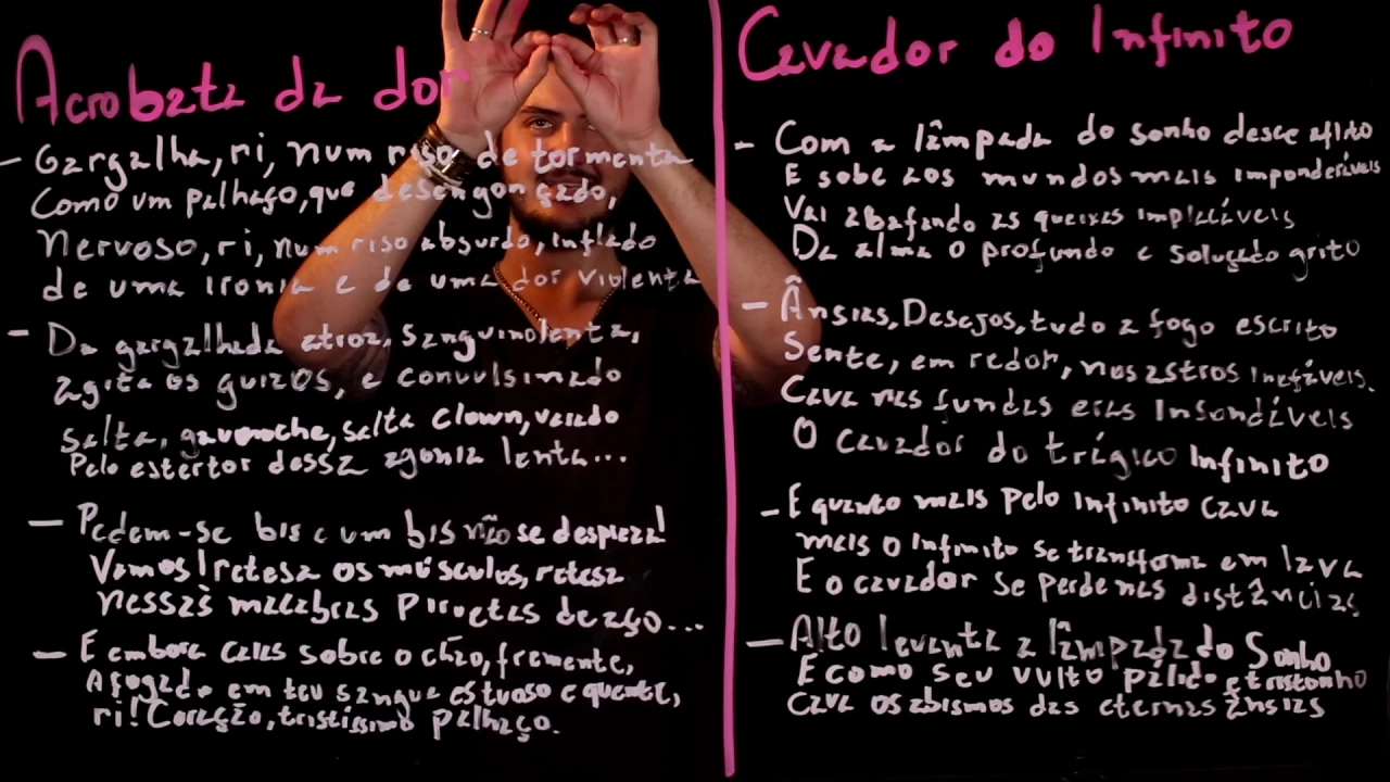 o símbolo da própria Dor Desse sujeito também Lógico o poema ele consegue ser muito mais aprofundado o poema consegue ser muito mais debatido podem ter diversas outras interpretações vocês viram que em momentos eu até dei três interpretações pra mesma coisa então tudo isso é bacana da gente comentar da gente e tentar discutir Bom enfim esse é o acrobata da dor Ele é bem pessimista Ele é bem pesado ele dá um choque de realidade na gente para que a gente entenda o que essa nossa existência nesse meio social e como a gente nega a existência real
