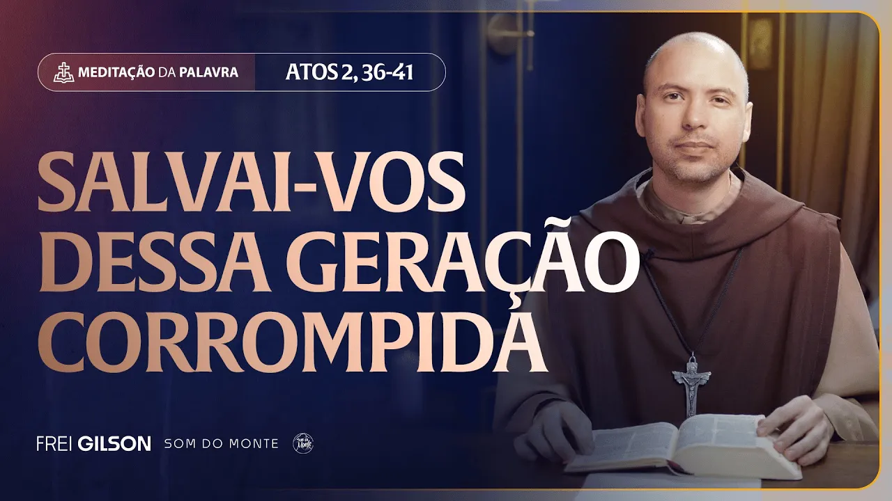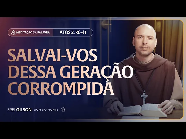 vivemos numa geração corrompida vivemos numa geração que cada vez se afasta mais de Deus é preciso que você se salve no meio de uma geração que não quer Deus ou seja nós não somos aqueles que seguimos a maioria a maioria tá indo para um lado a maioria está traindo a Deus a maioria está desprezando Deus a maioria está se corrompendo mas você não é maioria você é de Cristo então a meditação de hoje é sobre como a gente vai se salvar no meio dessa geração que está corrompida o vídeo de hoje é importante a meditação de hoje é importante fique conosco até o final em nome do Pai do Filho e do Espírito Santo amém atos dos Apóstolos capítulo 2 versículo de 36 a 41 no dia de Pentecostes Pedro disse aos judeus: "Que todo o povo de Israel reconheça com plena certeza: Deus constituiu Senhor e Cristo esse Jesus que vós crucificastes. " Quando ouviram isto eles ficaram com o coração aflito e perguntaram a Pedro e aos outros apóstolos: "Irmãos o que devemos fazer? " Pedro respondeu: "Convertei-vos e cada um de vós seja batizado em nome de Jesus Cristo para o perdão dos vossos pecados e vós recebereis o dom do Espírito Santo.