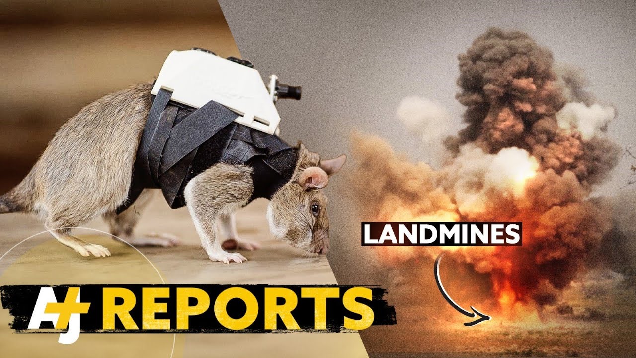 You see an operator, a trained African with his rats in front who actually are left and right. There, the animal finds a mine. It scratches on the soil.