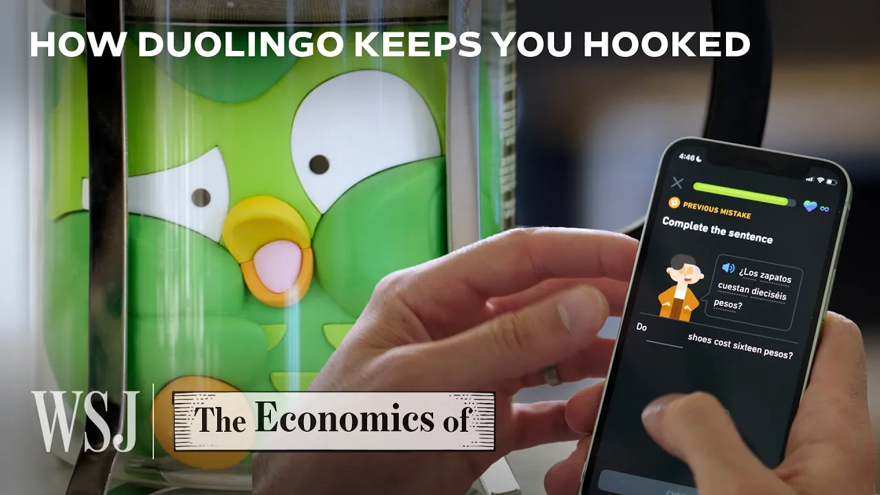The answer lies in AI, A/B testing, and this little green owl. This is the economics of Duolingo. (phone pings) If you've ever used Duolingo, you'll have noticed it's less like a traditional language lesson and a lot more like a game.