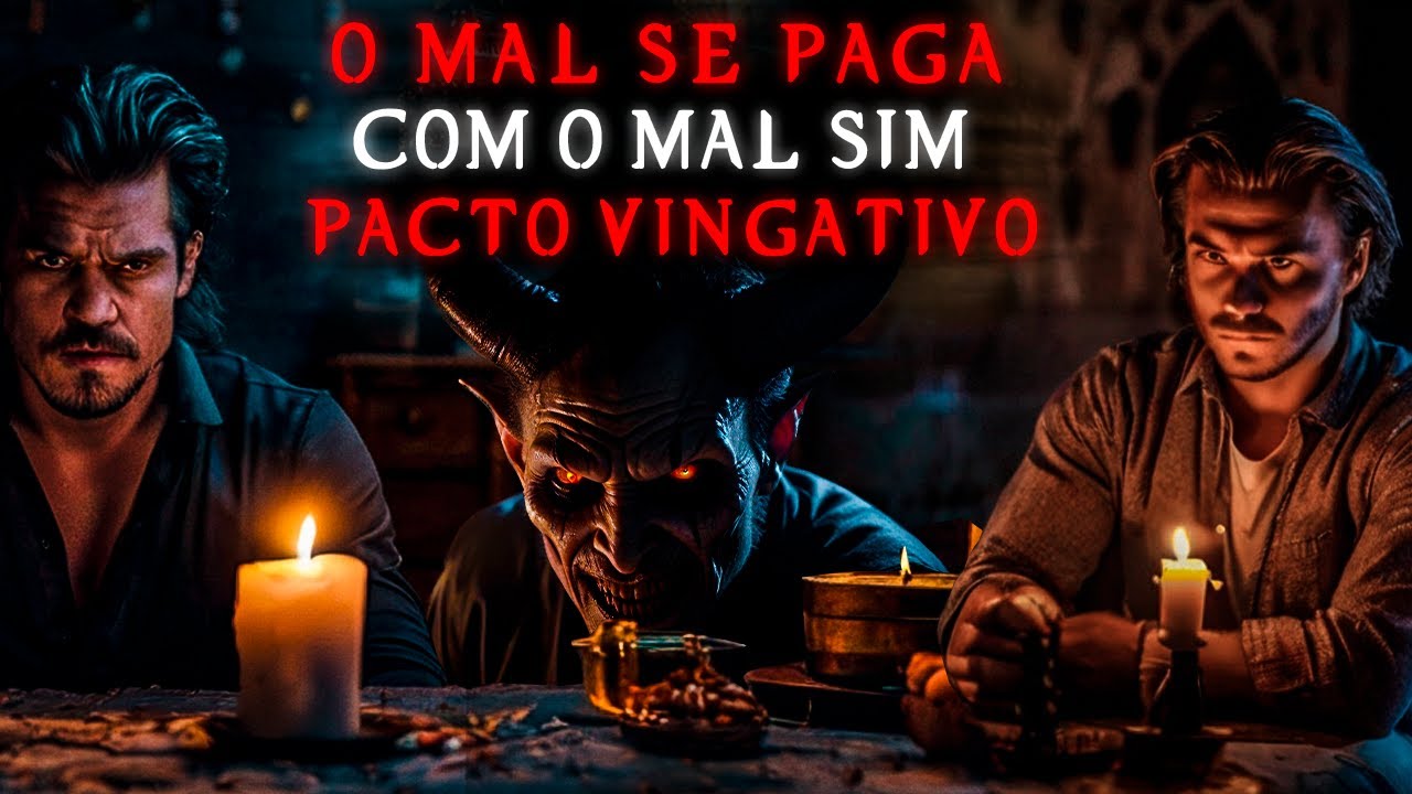 começado a figura na penumbra não se movia apenas me observava com aqueles olhos brilhantes que pareciam perfurar minha alma o ar tornou-se denso e pesado e uma sensação de terror absoluto se apoderou de mim eu sabia que não estava sozinho que havia algo mais no quarto algo que não pertencia a este mundo lentamente a figura Começou a tomar forma revelando a silhueta de um homem vestido de preto reconheci imediatamente o estranho que me havia oferecido o pacto seu sorriso agora mais amplo e sinistro fez um arrepio percorrer meu corpo ele se aproximou lentamente e cada