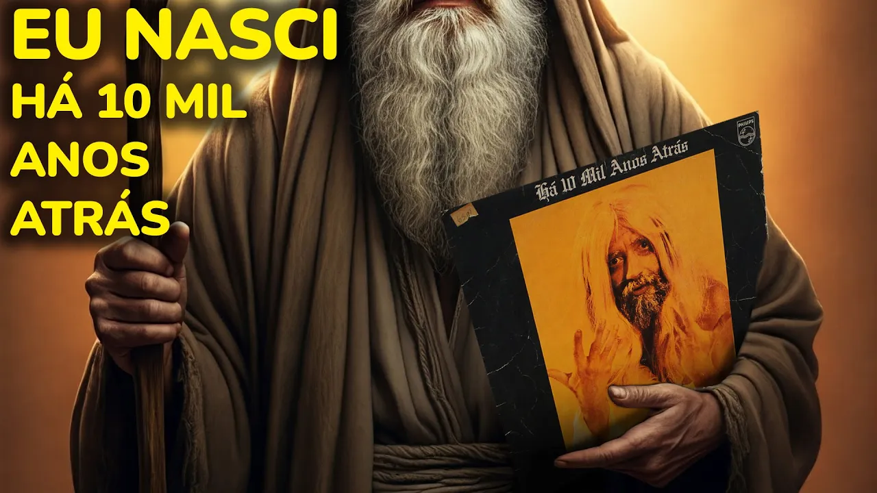 essa música não foi cantada pelo diabo mas bem que poderia Porque ela foi feita na escuridão de um blackout com ela Raul Seixas reencontrou O sucesso comercial mas foi quando ele se sentia abandonado e tendo sérios problemas com as drogas e esse sucessão Foi mesmo com um erro gramatical no título essa é a história de Eu Nasci Há 10. 000 anos atrás eu nasci eu nasci ela foi a faixa 11 última do disco que tem quase o mesmo nome é só há 10. 000 anos atrás lançado no fim de 76 e foi o quarto da carreira solo do Raul ela faz parte de um conjunto de canções que criou em torno do baiano uma aura de profeta guru espiritual o que tinha começado lá com guita e isso foi muito por causa da capa e contra capa do LP em que ele aparece como um profeta Então vou começar contando em detalhes os bastidores dessas lendárias fotos o Raul e mais três pessoas ficaram horas debatendo como é que ele iria ia aparecer até o Raul pegar uma peruca que ele tinha em casa e vestir um pedaço de pano branco como se fosse a roupa mais primitiva e simples o que aliás é o oposto disso aqui que eu tô vestindo que é a roupa do Futuro quando que há 10.