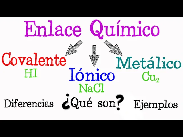[Música] un enlace químico es la unión de dos o más átomos de un mismo o diferente elemento existen tres tipos de enlaces químicos enlace iónico covalente y metálico estos enlaces presentan las siguientes características el enlace iónico se forma cuando se une un elemento metal con uno no metal por ejemplo el sodio y el cloro que al unirse forman cloruro de sodio en este tipo de enlace ocurre una transferencia de electrones esto quiere decir que un elemento le quita electrones al otro provocando que queden cargados eléctricamente uno con carga positiva y otro con carga negativa a