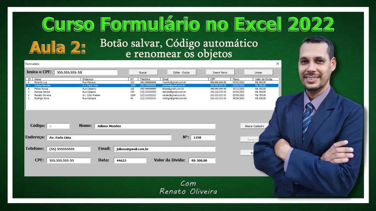 Olá meus amigos. Sejam muito bem-vindos estamos de volta aqui na segunda aula desse curso sobre como criar um formulário no Excel. Eu sou o Renato Oliveira e você está no canal Reyno Compartilhando Conhecimentos.