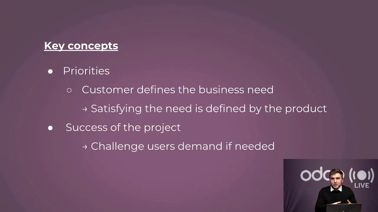 what are the exact requirements and satisfying this that need will be defined by the product so you will analyze that need and you will analyze those workflows of your customer and you will try to see how those fit in overdue enterprise what is all you capable of what is only not capable of yet so you will define that business need and make sure that you can fit it into perfectly also a key concept will be the success of the project success of the project is key so as I said in in my previous slide you