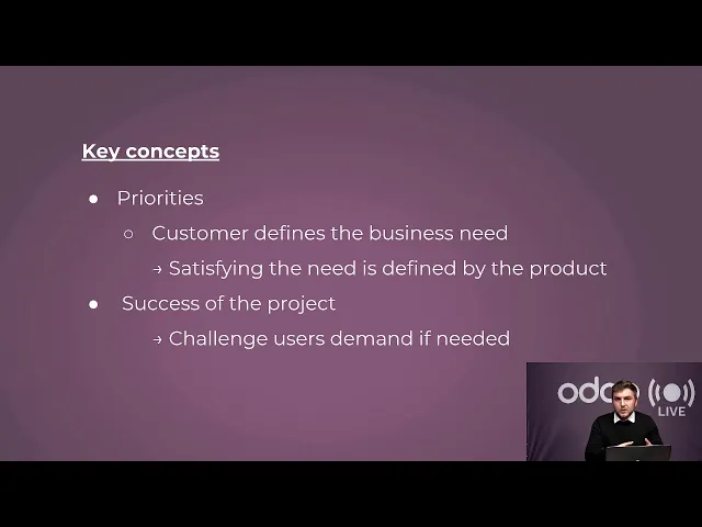 you while doing this implementation so definitely take this into account and use make use of this support from from our side from odoo also this could help you involving the account manager could help you to introduce although Enterprise as a part of the whole solution because basically do Enterprise the account mentor can be explaining what the different roles are and what the partner is responsible for and what you can do with odoo itself for exam the purchase of the licenses the account manager can make this clear to your potential customer as well and not to