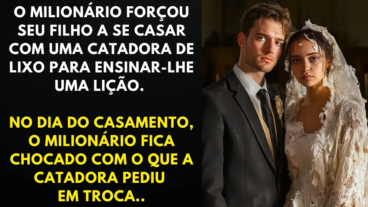 determinado a ensinar uma lição ao filho sobre humildade e o Real significado do Sucesso um milionário toma uma decisão drástica força o rapaz a se casar com uma catadora de lixo porém o que parecia ser um plano engenhoso para promover uma transformação no caráter do jovem toma um rumo inesperado no dia do casamento o milionário confiante de que tudo está sob seu controle é surpreendido por um pedido inesperado da noiva que muda completamente o jogo O rugido de um motor potente reverberava pelas ruas movimentadas do centro Bruno aos 30 anos era o herdeiro legítimo do