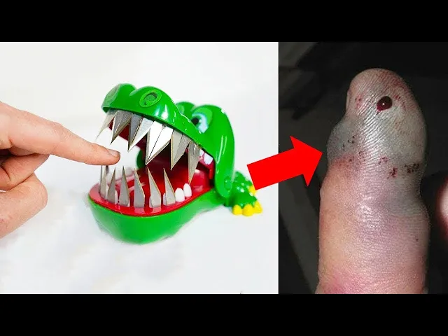 poderia ser se não fosse o grande número de acidentes que ocorrem durante o manuseio deste brinquedo de explosões a cortes e queimaduras o ideal é mantê-los longe das crianças Crocodilo ou croc croc com lâminas de bisturi lançado pela BBR Toys a dinâmica desse jogo é bastante simples se trata de um jogo para se jogar entre amigos no qual cada um escolhe um dente por Rodada ao acionar o dente errado ou crocodilo fecha a mandíbula acarretando em uma tela dentada e os fabricantes do brinquedo garantem que o crocodilo de brinquedo em nuvem se vo e que
