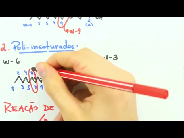 a temperatura ambiente a nossa previsão a gente dividiu monoinsaturados e poli-insaturados eu moro em saturado há entre carbono Obrigado 9 e 10 como sempre 200 menor número esse é um Ômega 9 já o ômega 6 vou fazer estrutura dele aqui e ele possui duas ligações duplas onde voltando na calça numeração Ômega Esse é o carbono Omega 1 2 3 4 5 6 7 8 9 10 acabou o nome a 6 além de possuir uma ligação dupla entre 9 e 10 possui ligação dupla Entre seis e sete Como ele sempre uso menor número ele é um