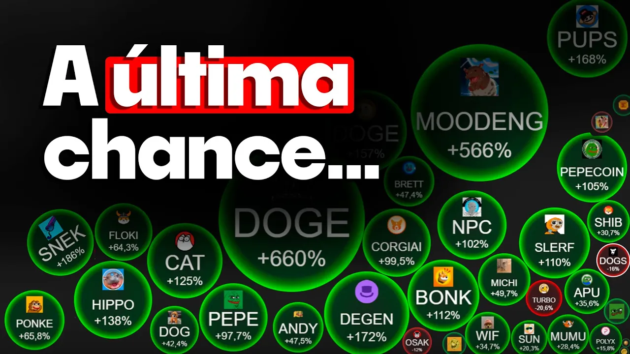 qual mem coin é a melhor opção para investir enquanto ainda dá tempo para lucrar pesado em 2025 será que é a Baby Doge a bonk a flock as maiores como shibainu e doj coin nesse vídeo você vai descobrir exatamente a resposta para essa pergunta porque eu preparei uma comparação entre essas principais mem coins e vou explorar quais podem ser as melhores opções para cada tipo de investidor e a gente vai comparar aqui as memic coes Com base no tamanho delas no perfil de mim coin Eu acredito que a gente pode considerar até a bonk como Blue chip de flock até baby doj coin a gente pode considerar mid Cap e abaixo disso né a gente tem as small Caps essas memic coes pequenas aqui que são lançadas na M shot e no Pump PF a gente tem algumas diferenças na hora de refletir sobre isso tem gente que acredita que mais arriscado ou menos arriscado vai ser um fator determinante Mas para ser sincero eu acredito que isso aí é besteira porque todas as mem coins têm um perfil de risco parecido tirando a única diferença grande que entra das small caps para as mid Caps quando a gente tá analisando baby do coin para cima o risco delas é consideravelmente menor do que os riscos dessas moedas principalmente porque a gente usa mem coins pequenas da Solana com o objetivo de fazer um trade que geralmente é rápido e que pode ser extremamente arriscado mas entre mid Caps e blue chips nós não temos uma diferença tão grande assim na verdade Eu acredito que a única diferença é no potencial de retorno que no caso das Blue chips costuma ser um pouco menor falando de potencial de retorno a gente tem uma diferença grande né porque essas moedas pequenas obviamente T um potencial maior do que as moedas grandes vamos analisar por exemplo a situação da doj coin de 54 Bilhões de Dólares para ela duplicar de valor a gente precisaria de mais 54 e concorda comigo que isso não é uma quantidade pequena de dinheiro o que que vocês acham que é mais fácil uma criptomoeda como a dogecoin conseguir mais 54 Bilhões de Dólares ou uma mim coin como essa Rocky aqui por exemplo que tem 10 milhões de dólares em valor de mercado duplicar e conseguir mais 12 milhões e quando a gente fala dessas mimic coes aqui Principalmente as que estão sendo lançadas geralmente ficam na casa de 10. 000 15. 000 20.