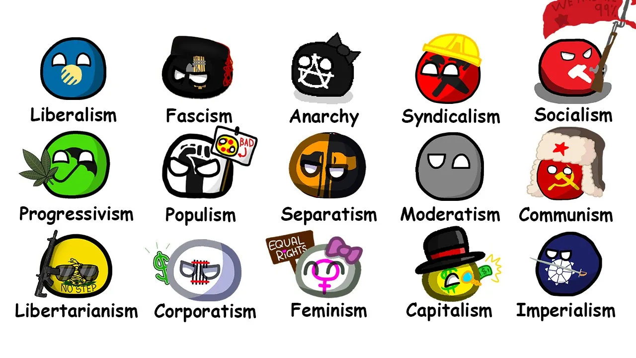 that advocates for a society without rulers or constituted Authority with a focus on the notion of Freedom it advocates for the replacement of the state with stateless societies and voluntary free associations environmentalism environmentalism sometimes called Green politics is a term used to represent a range of ideologies that fall under the belief that nature should be a significant factor in deciding public policy be it increasing recycling decreasing CO2 emissions stopping water pollution Etc populism it focuses on appealing to a large number of people and their sensibilities believing that what the masses want must be what the