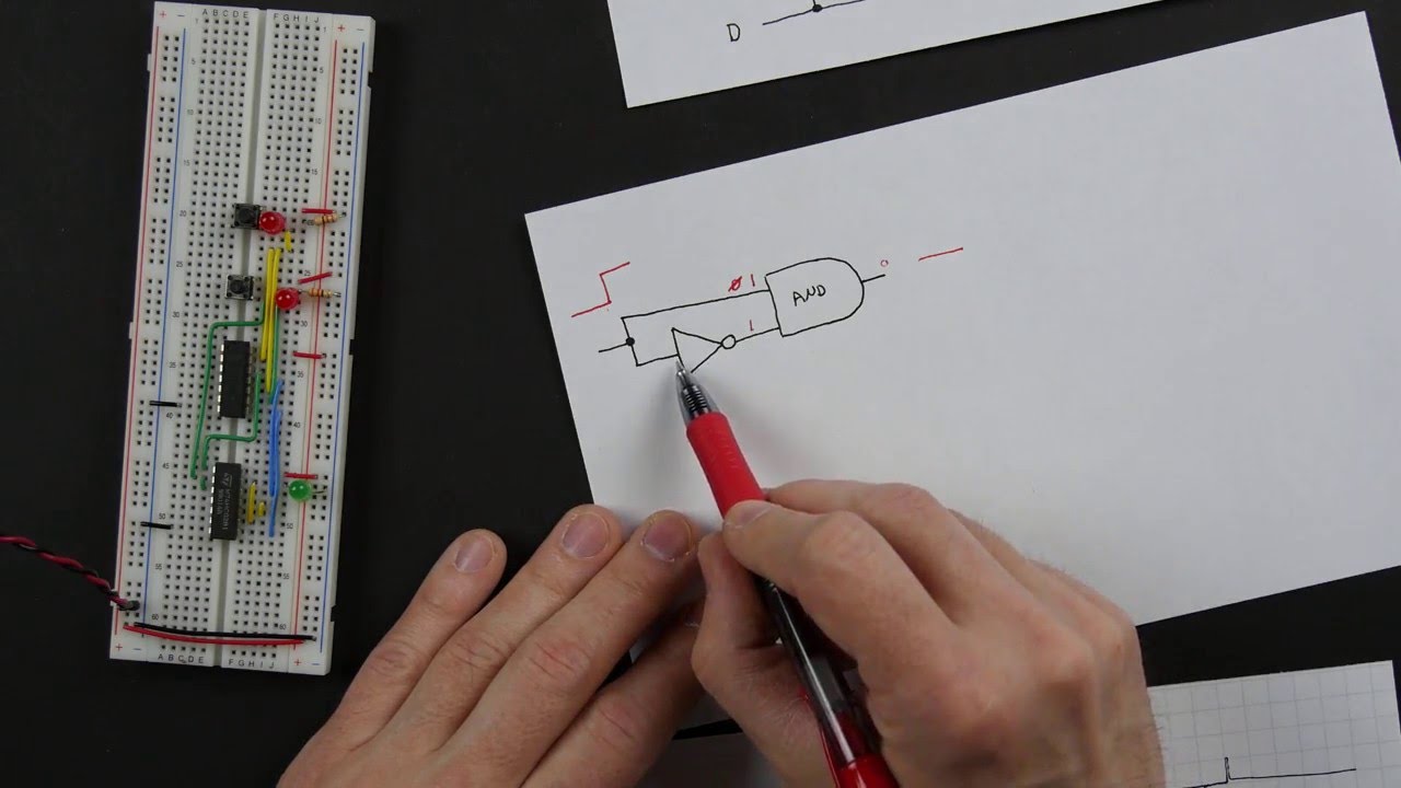 Fala galera beleza aqui é o Wagner Rambo do WR k Channel e esta é mais uma Fast lesson a aula de hoje é bem rápida mas eu estava devendo para vocês A análise do último flip flop que faltava para completar a nossa lista de flip flops em eletrônica digital Afinal já analisamos o JK o flip flop tipo d o l o flipflop Sr que é o let básico e o flip flop que faltava como você já deve ter visto no título do vídeo é o huggle flip flop ou flip flop do tipo t o flip flop do tipo T é bem simples de entender uma vez entendido o flip flop JK vejam que temos aqui na imagem um flip flop JK com as entradas Em Curto Estamos ligando o k com o j e esta é a nossa entrada do tipo t o que ocorre ligando k e o J vejam na tabela verdade aqui ao lado o flip flop JK tem essa tabela verdade quando os dois são iguais a zero temos em que é f o estado atual Quando os dois são iguais a um temos o q atual negado ou seja o inverso as situações intermediárias não vão ocorrer no flip flop do tipo t ou seja ligando eles Em Curto eles sempre serão Iguais por isso que temos esta segunda tabela verdade aqui que é a do flip flop tipo T quando é zero a nossa saída é o q atual vejam aqui pela tabela original do JK e quando é um a nossa saída é o q negado Isso significa que sempre que o t for nível lógico alto e atualizarmos o clock dependendo se for borda de subida ou descida aí aí vai depender do circuito integrado mas no caso aqui esse exemplo será por borda de subida a cada subida de clock teremos a atualização da nossa saída se a entrada for nível alto ou seja a saída vai invertendo o seu sentido do seu nível Lógico o q vira nível baixo e o não q vira nível alto e depois o q vira nível alto e o não q vira nível baixo e assim por diante Vamos ver isso com uma simulação Bem simples vamos pegar o JK aqui e pegar Logic state para trocar aqui o estado juntando o k com o J temos o flip flop tipo T podemos colocar aqui o nome da nossa Logic state como t e vamos utilizar também uma Logic state para atualizar o clock Afinal podemos fazer o teste de forma lenta aqui para enxergarmos bem o funcionamento do flip flop e vamos colocar Logic probes na saídas q e não que para enxergar melhor os níveis lógicos dando um play para simular aqui no Isis ele inicia com a q em nível baixo e a não q em nível alto obviamente a não q Será sempre o inverso da q e vejam que se eu atualizar o clock e a nossa entrada T está em nível baixo nada nada ocorre nada acontece se eu ligar a saída T acionando um passando para nível alto a cada atualização de clock temos a atualização das saídas e esta inversão por isso que é flip flop T de tuggle significa alternar ele fica alternando as duas saídas a e a não que entre nível lógico alto e nível lógico baixo e aí o flip flop tipo tuggle permite muitas aplicações da nossa eletrônica digital no circuito sequenciais por causa dessa sacada aí de ir alternando toda vez que a entrada T for nível alto passando ela para nível baixo nada ocorre então vejam que eu posso armazenar estado na saída eu mantenho ali nível alto atualizo o clock ficou em nível baixo a saída aqui se eu quiser manter esse nível baixo armazená-lo eu passo a t para nível baixo e o clock não fará mais efeito querendo atualizar de novo eu coloco ela em nível alto e a cada borda de subida estarei atualizando a minha saída Então essa foi mais uma f lesson essa foi Fast mesmo mas é que eu estava devendo ainda explicação do flip flop do tipo T agora já sabemos já conhecemos todos os flip flops da eletrônica digital e vamos implementar muitos projetos ainda aqui no canal utilizando estes flip flops que apresentam diversas aplicações interessantes como sempre clique em gostei dê o seu like compartilhe com todo mundo este vídeo que isso nos ajuda demais ajuda demais na divulgação do canal e todos só tem a ganhar com mais conhecimento se é novo no canal clique em se inscrever para não perder nenhum vídeo nenhuma novidade nenhuma promoção aqui do seu WR Kids Channel por hoje é isso vou ficando por aqui deixe seu feedback aqui embaixo até a próxima e aquele abraço Obrigado por assistir a mais um vídeo agora clique em gostei para divulgar o nosso trabalho em suas redes sociais inscreva-se no canal WR Kids assim não perderá Nenhuma novidade e compartilhando o nosso conteúdo estará concorrendo a prêmios curta a nossa página no Facebook facebook. com wrr Kids siga-nos no Twitter @ Wagner Rambo mande-nos e-mails com dúvidas críticas sugestões elogios para WR kits @w kits. com.