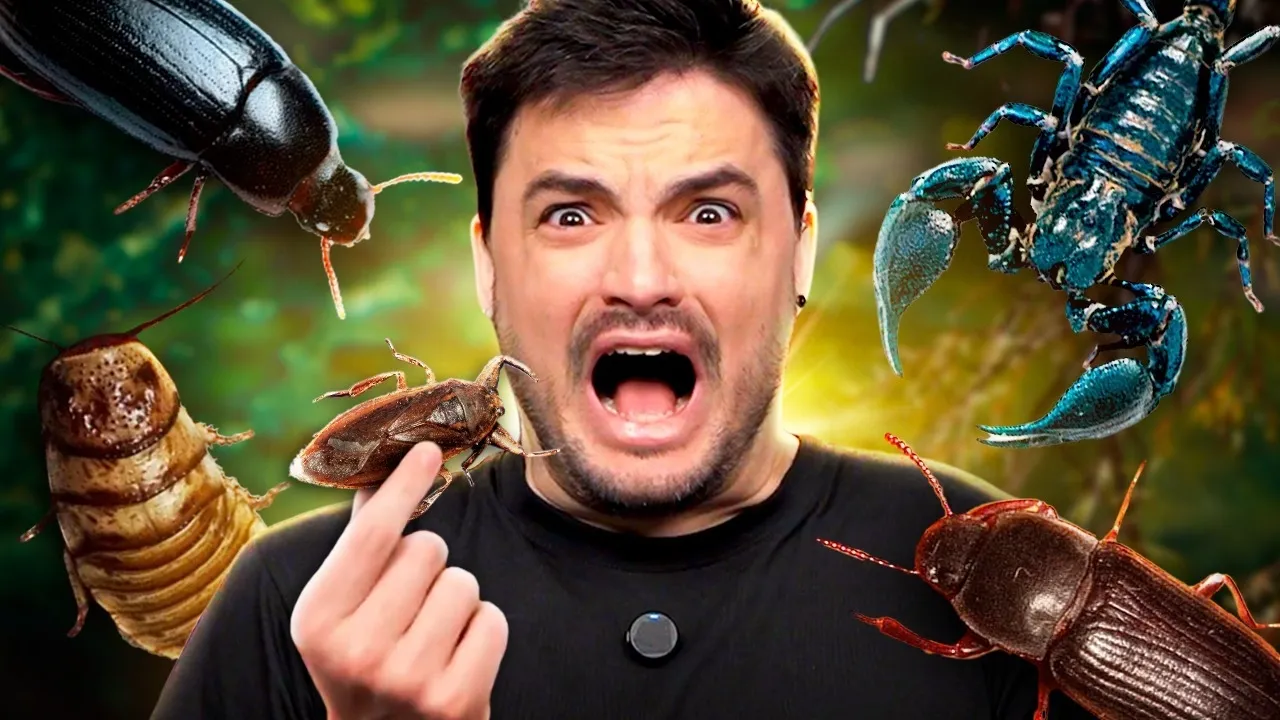 Olá eu sou o Felipe Neto e eu estou com muito mas muito medo nesse vídeo a gente vai literalmente comer insetos inacreditáveis incluindo ao final do vídeo uma barata d'água não não não eu tava combinado isso você falou de formiguinha coloca uma foto de uma barata d'água na tela é a gente vai comer [Música] isso esse canal esse ano se especializou muito em vídeo de comida e a gente precisa de experiências aqui então hoje a gente vai provar cinco insetos preparados de fato como snacks tá eles são vendidos como snacks ou seja tem gente que de fato compra isso e come vendo um filminho tem certeza que o Kaká não pegou no hall tenho absoluta ele ia falar não é fal eu eu eu espero muito que não eles são preparados é cozidos ou sei lá como é que eles são feitos assados fritos e eu tô com muito medo todo mundo sabe do meu histórico com barata do meu terror com barato e o que que eu peço PR você que se inscreva que deixe o like porque a gente tá aqui se esforçando para merecer essa sua inscrição Então manda esse vídeo pros teus amigos e vamos para o primeiro NH da noite do dia eu quero adicionar de salubridade no saláo nesse caso é literal assim né não não tem chance de morrer tudo tem chance de morrer Ah então não vale n se tudo acabou de perder argumento então todos os empregos do mundo tem que ter adicional de salubridade perfeito aí não é adicional né é emprego exato deixa está vivo não os bichos estão mortos e preparados prontos para serem alimentos com exceção de um que aind não mentira mentira e eu quero deixar muito claro pra Comunidade da galera que sabe que eu não como carne é óbvio que eu não vou me alimentar disso periodicamente e é óbvio que isso não vai fazer parte da minha dieta só porque realmente é para gravar vídeo aqui vamos lá traga o primeiro pode botar aqui no meio temos o nosso primeiro como é que a gente chama isso quitute ah iguaria né iguaria iguaria ficou chique Alguém sabe onde isso é comido porque a gente trouxe de fora né Kaká sim na realidade isso é uma coisa que tem vários documentários hoje em dia que o pessoal tá tentando falar que Inseto é uma coisa boa que tem que participar das nossas comidas como proteína é uma fonte muito rica que a gente fala mas será que isso aqui é especificamente comida em algum lugar assim olha só bilionário também é uma fonte muito rica nem por isso que eu quero comer um ele tem um ponto aqui tô muito incomodado com agora de saber que as pessoas estão querendo incluir inseto na nossa alimentação cara cara mas assim no Brasil é muito tradicional a farofa com formiga é form sauva que tá na jura é formiga da Uva não cerveja bebe cerveja com petino de onde formiga aonde peru peru ah aí no mes o pessoal come gafanhoto né É vamos pro primeiro então por favor 1 do TR e foi o que que é isso Cac parece uma mosca parece uma passa tá sujo aqui kak Kaká parece uma mosca detalhe ontem tava na casa na área gourm E aí eu falei gente deixaram o i fod deixa eu cair aqui um alimento cara tava com a baratinha lá na varanda desculpa legal olha as perninhas olha as perninhas o que que é isso Kaká é um grilo negro cara é horrível de encostar até da Agonia eu acho tá cara boa tá eu eu de coração acho tá cara boa pega aqui Peg tenta pegar aqui de pinça aqui na cabecinha só faz assim eles já vem já salgados Ah obrigado Cacá ele tá morto Não interessa é muito esse vem com rabo o dele vem com espetinho legal legal seu o teu espetinho deixa eu mostrar aqui olha o do Passini é o espetinho de grilo negro Olha que bonito cara deixa eu olhar a cara dele não é um Olha se você olhar você vai existir olha aqui olha é sempre importante olhar PR aquilo que você vai comer não Passini nem tudo olha só para isso sério Ai cara e esse deve ser o menos pior as asinhas é esse deve ser o menos pior sabe o que que é o pior é que se a gente tivesse fazendo isso com camarão ia ser a mesma reação se a gente nunca tivesse comido camarão ele é tão escroto nojento patético Quanto isso Hum que é pô tem dente cara dente ah você tá começando a ver coisa que não existe né então na embalagem fala que tem que ter cuidado porque pode ter alergia as pessoas que TM alergia crustáceos eles são Teoricamente crustáceos Ah então o Vitor não pode comer isso Ah então realmente eles não são crustáceos né são insetos mas eu entendia ser a mesma base da alergia né Isso aqui é o ferrão para matar um né É lógico é por isso que a gente selecionou PR você esse bicho é muito conhecido por matar pessoas não mas isso aqui você acha que isso aqui não matar a barata eu acho que não pass acho que a barata mata isso pô ferrão Marcel você tá se equiparando quer dar na boquinha já não tá na hora que eu peguei eu senti as patas no meu dedo deixa deixa dar PR você Ah cara a carinha é boa vai a carinha é boa Marcel a carinha a carinha dele aqui é aposa vamos comer tipo tortuguita não por que não cara se você quiser você passa esse esse latrocínio Eu não quero fazer aqui nem tortuguita eu não vou enfiar tudo na boca esse ferrão vai matar vou vou atirar os petin só assim bom vamos pra Contagem tá um do 3 qu CCO 6is 512 513 e já é crocante é bem crocante ah na moral tá chegou de madeira Qual foi a útima vez que você comeu uma ripa cara olha eu eu tô eu tô me me apertando eu arrepiei mas assim ah vai considerando aí de 0 a 10 as possibilidades alimentícias do universo Men 38 não é não verdade não é não é não é assim não tem o gosto não é ruim ou seja ele não causa ojeriza ele não causa tipo não mas é saber o que você tá comendo o problema se alguém tivesse me dado uma bolinha de chitos e o gosto fosse esse pass sair de fato o gosto não tem gosto de nada é só é só textura de madeira C tipo um torcida aquele biscoito torcida se fosse com esse sabor aqui eu comeria todos juntos agora tranquilamente Se