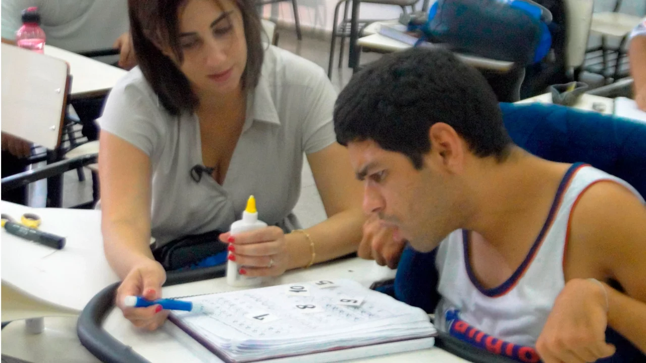 [Música] como você viu para a professora Rita de cásia ruda a motivação para incluir transcende questões legais e estruturais depois de anos trabalhando com crianças e adolescentes com algum tipo de deficiência ela percebeu que embora esse trabalho seja intenso e envolvente a satisfação com bons resultados é muito grande vem daí sua forte ligação com seus alunos e com o universo das pessoas com necessidades educ também não podem ser esquecidas as razões de ordem pedagógica e social estar na escola e ter um Convívio com o ambiente escolar são fatores que dão aos alunos especiais a possibilidade