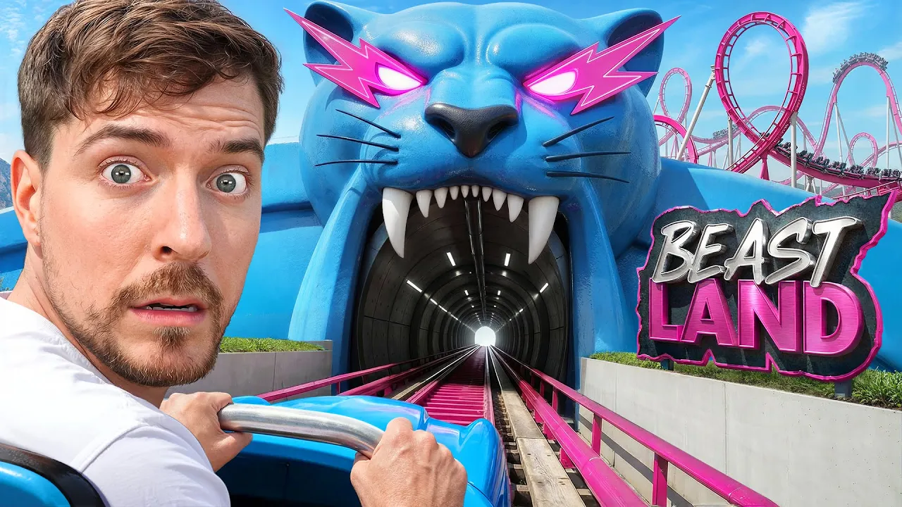 I built this massive theme park! And it is open right now! I spent months designing Beast Land, this massive theme park with games… [groans] [screams] Challenges… [laughs] The craziest rides… [screams] And all of these insane prizes here.