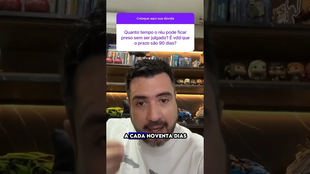 quanto tempo real pode ficar preso sem ser julgado É verdade que o prazo são de 90 dias não não é verdade não existe um prazo previsto para ganhar um possa ficar preso antes do fim do processo existe uma necessidade sim de duração razoável daquele processo então o processo não pode extrapolar arrazoabilidade mas esse prazo de 90 dias não existe o que existe aqui a cada 90 dias o juiz tem que verificar se ainda estão presentes os requisitos que colocaram aquela pessoa na prisão e se não estão presentes tem que colocar na Liberdade Então tem que