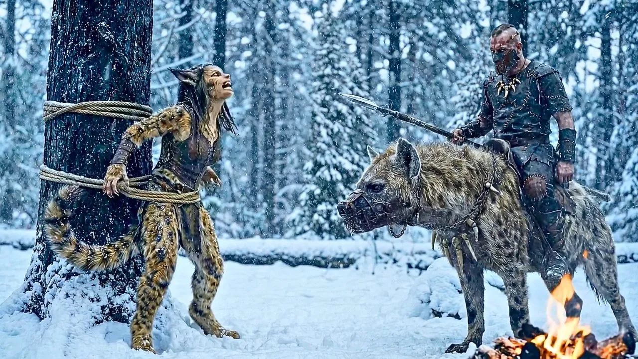 Madeira e peles voam. O caminho abre-se. A aldeia fica para trás.