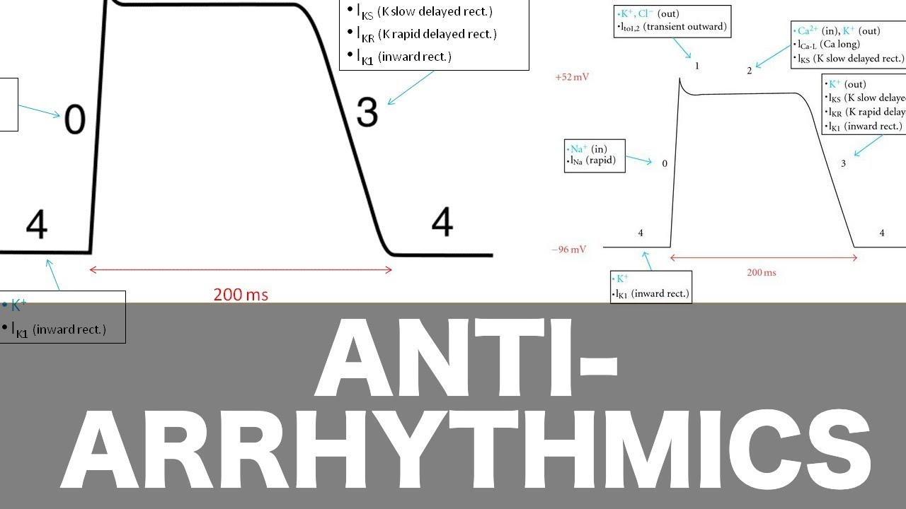 activity and if you want to learn more about them check out my other videos about adrenergic receptors and beta blockers now let's move on to class 3 antiarrhythmic drugs so class 3 agents work mainly by blocking the potassium channels that are responsible for the Phase 3 repolarization this leads to increase in duration of action potential and increase in effective refractory period the agents in this class include Amiodarone Dronedarone Sotalol Dofetilide and Ibutilide there are mainly used in treatment of supraventricular and ventricular tachyarrhythmias as well as atrial fibrillation and flutter the most widely used drug in