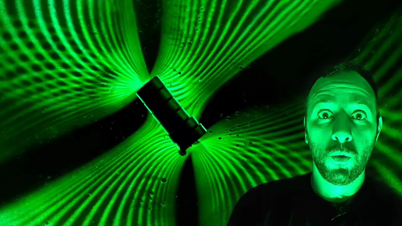 quando a gente fizer coisas mais loucas Quem é essa aqui [Música] [Aplausos] [Música] [Aplausos] [Música] talvez você seja uma pessoa curiosa e queira saber o que que aconteceu porque que essas linhas se formam aqui bom a gente já sabe que o ferrofluido é um negócio que se arranja na hora que a gente coloca perto do imã ele reage muito bem o campo magnético e forma aquelas aqueles espinhos esquisitos que a gente já viu em outro vídeo do manual do mundo mas se ele tiver muito achatadinho que nem ele tá aqui um pouco de luz consegue