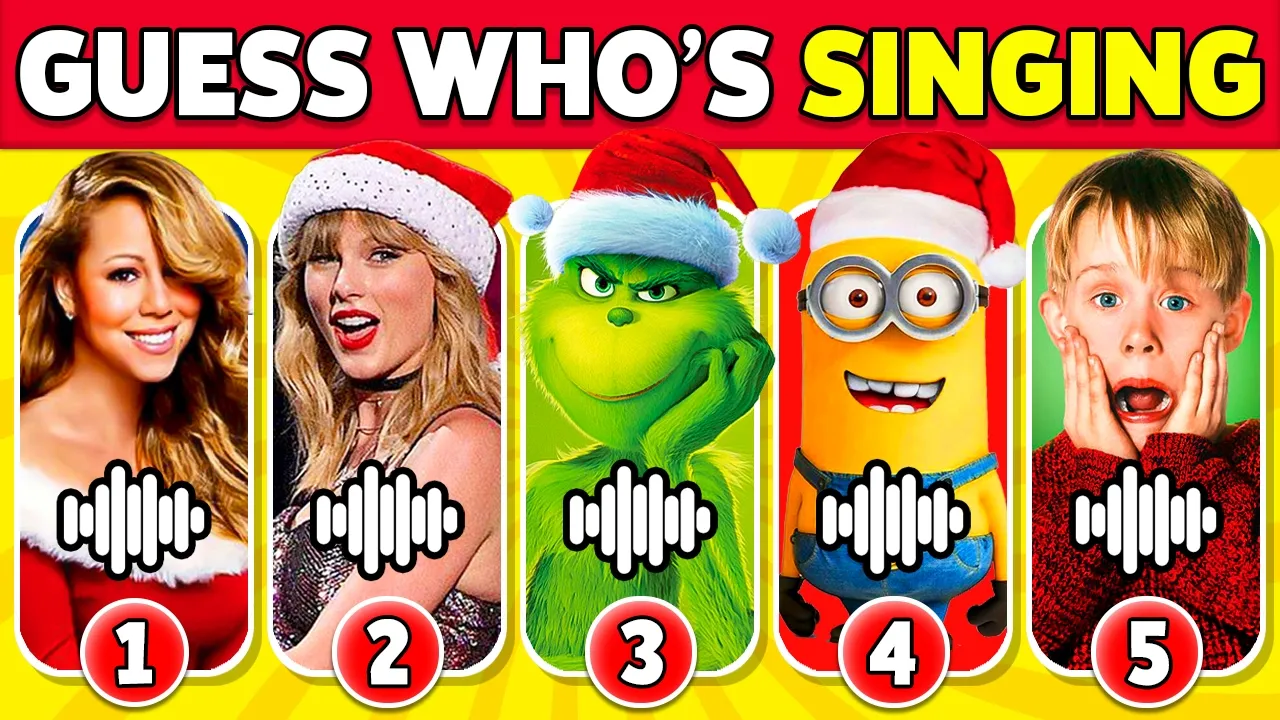 next challenge Who is your favorite? Crazy Frog Next Could you recognize the voice? Well played if you recognized The Jackson 5 singing Who's ready for the next question? Yes! It's Joy Next song Who just sang? Among Us let's move on to question 21 Will you be able to guess all the characters in this Christmas quiz? Good luck It's Kevin from Home Alone who's this character? Any idea who that could be? The Grinch The next song is coming up MrBeast Here's another one for you Who's behind this voice? Porsha Who's speaking? Tell me in the comments