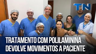 Com autorização da Anvisa, a polilaminina foi trazida e aplicada no paciente voluntário por pesquisadores da Universidade Federal do Rio de Janeiro. >> Luiz já percebeu uma evolução. Se eu fazer um esforço com a minha mente, forçar a tentar mexer, eu vejo nervo, o nervo da minha perna trabalhando.