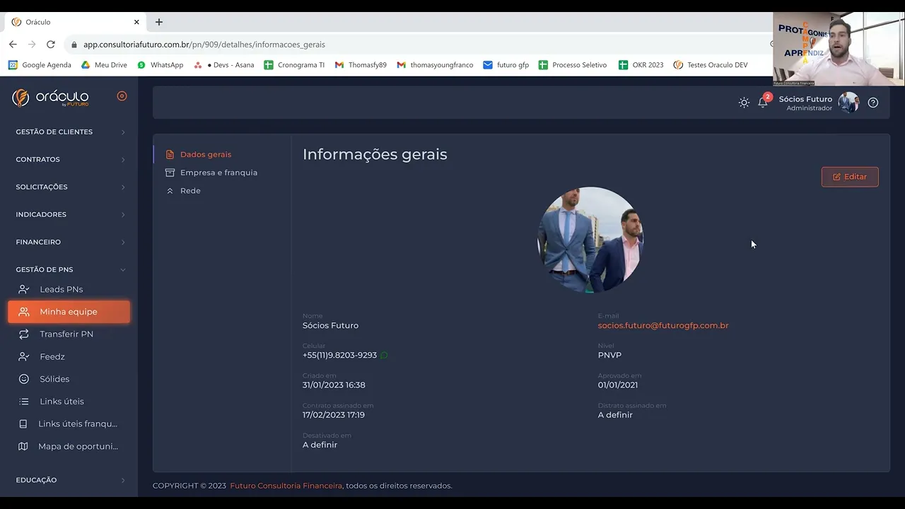 seja muito bem-vindo muito bem-vinda B no vídeo de hoje Esse vídeo é dedicado principalmente a você que deu um start aqui na futuro consultoria financeira você tá começando essa jornada conosco essa parceria E é claro pra gente formalizar toda uma parceria a gente precisa de um contrato então o vídeo de hoje é especificamente pra gente gerar o contrato dentro do Oráculo claro que para eu primeiro gerar Esse contrato tenho que ter os meus dados da minha empresa no caso o mei então a abertura do mei é imprescindível pra gente conseguir né dar sequência no seu