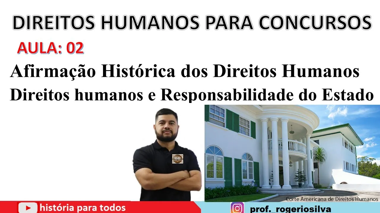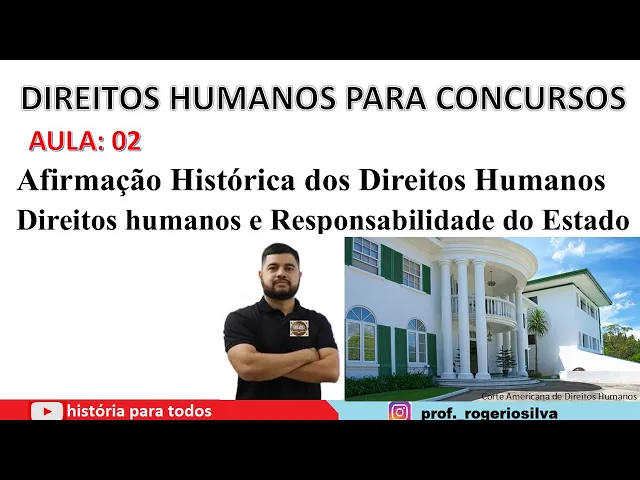 Fala galerinha do canal aqui é o professor Rogério Silva do canal história para todos vamos seguir na nossa segunda aula de direitos humanos o assunto abordado Hoje os assuntos abordados hoje serão afirmação histórica dos direitos humanos e direitos humanos e responsabilidade do Estado eu acredito gente que pelo desenrolado tempo nós vamos gravar a primeira parte da aula Somente a parte de afirmação histórica e depois numa segunda oportunidade nós iremos continuar com direitos humanos e responsabilidade do Estado beleza deixe seu like inscreva-se no canal acompanhe as redes sociais para você acompanhar todos os mapas mentais que