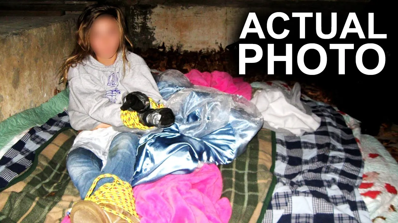 a freezer they found two Dead Squirrels lying right next to a few red popsicles but the biggest surprise was hidden in the basement a cabinet was blocking the doorway but once moved an officer discovered Tina's daughter Sarah Maynard lying on a sleeping bag on top of a pile of leaves and Matthew's basement her feet and hands were bound with yellow rope and duct tape alongside her in the basement were more trash bags filled with leaves thankfully Sarah appeared to be unharmed but she was wearing a makeshift diaper made from a plastic bag his officers approached