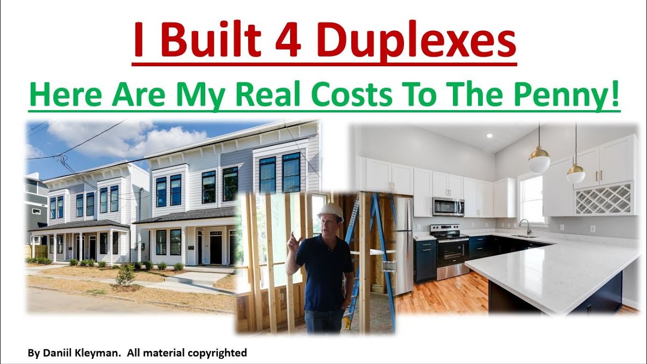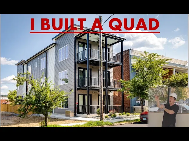 all right what's up guys Daniel Clayman here I've been working on this video for a while actually I just finished a brand new Quad you can see here in the pictures and I'm going to show you a lot more pictures here it's a 4unit apartment building we just wrapped it up it's fully leased cash flowing and in this video I'm going to walk you through a whole bunch of things including my exact costs that it took to build this thing so it's on a very skinny lot it's in Richmond Virginia and it was kind of a challenging design and I'll walk you through some of some of the design features of of this quad but it sits on a 30t wide lot and the project turned out awesome really pretty big balconies outdoor spaces big spacious layouts lots of natural light this is these are the final professional photos that we had our our regular photographer take again lots of natural light inside big Living Spaces really nice kitchens with full height pantry cabinets backsplashes quartz countertops the these leased up for the most part pretty fast it was a little bit of a slow summer but uh all four units are now leased up so and again these are some of the final pictures this is the balcony the the balconies are 8 by 18 ft and then we added some really cool features like these mud mud rooms which look great but really didn't cost us much to build at all big uh big bathrooms 48 in vanities with quartz countertops in the bathrooms just overall a really nice design so in this video I'm going to show you exactly what this project cost to build I'm going to show you the floor plans I'll show you my exact floor plans in this video and you're you're welcome to replicate them if you want uh again very cool design for these apartments I'm going to break down the order of events and construction and show you actual pictures throughout the construction I'm going to show you where I went over budget I'm very open with my numbers and and this is a big one I'm going to show you where the you having to go by commercial building code in this project drove up cost by over $30 a square foot now again this this was still a profitable project but building by Commercial Code when we went to a quad drove up costs by over 30 bucks a foot and I will show you the exact break down of how that $30 a foot is what what it's composed of okay and finally I'm going to give you my take on whether you should build quads or not and how to avoid cost over runs if you do build something like this okay so make sure you watch this whole video the there there's no fluff here we don't you know we we I there's no Lamborghinis in my video or all this other that that you find in in most YouTube videos if you follow our YouTube channel you know it's it's very deep hard-hitting content that you can Implement and like real information that you can use so really quick my name is Daniel Clayman uh that's that's that's my that's my wife Dina I'm actually recording this on our eighth uh wedding anniversary it's today so we've got we've got three beautiful children together so I built real estate I built software for Real Estate Investors I I started back in ' 08 with with zero money I'm a first generation immigrant uh I got laid off in '08 had absolutely nothing and and I got into real estate I started renovating one house at a time doing gut Renovations of historic properties doing uh some flips bird deals and and I I slowly evolved into doing real estate development today I own and manage a pretty large multif family and mixed use portfolio it currently it's it's north of $60 million and and with the projects have in the pipeline it'll soon be over $100 million in projects that that we own and manage without um almost almost without outside investors so my in my business right now I buil everything from single family homes and duplexes that look like this to to small mixed use developments this is a bunch of duplexes that we recently finished quads small mixed use buildings mediumsized mixed use buildings all the way to to larger multif family and mixed use projects so I I like to think that in my business I have a a fairly unique View and insights into specific costs when it comes to both small and large projects I think we're fairly unique in the sense that we build both small and large projects and so there are ongoing conversations inside my company that that we have about is it better to build small because we actually buil if we build stuff by Residential Building Code it costs way less per foot to build or is it better to build big because there's some economies of scale there and we can create more units most of what I do is build to rent but but cost per foot goes up so uh I'll touch on some of these topics in this video and I think it's going to be really insightful and if you're looking to get into development or if you're already developing this should be very interesting for you to be able to Compare costs in your Market to to my costs so a few months ago I put out this video very similar to what I'm recording for you now called I it's about the four duplexes that I built and they break down my exact costs for those duplexes and because they were duplexes I was able to build them by residential building codes so we were able to avoid a lot lot of things that commercial building code triggers and so after you watch this video go back and if you haven't seen the duplexes video go back and watch that video so you can see the difference in my market for me in my business in cost between building by residential and commercial building code and they are significant so let me give you a quick backstory on this project and I'm going to show you floor plans and I'm going to show you all my numbers so I was already starting on this how many units was it it was we just finished this project also it's a 16 unit mixed use building and we had already broken ground on it and I literally came across the slot across the street it came to me off Market I had the opp