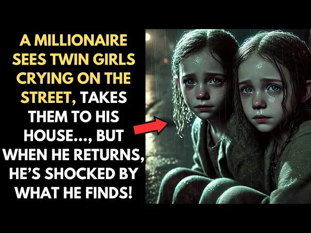 of loneliness his business was doing well but he knew that something was missing in his life a void that not even the greatest success could fill as he turned a corner something caught his eye under the flickering light of a Street Lamp two small Figures were sitting on the sidewalk hugging each other their shoulders shaking with cold Nathaniel slowed down and stopped the car stepping out he was immediately hit by the icy Wind and Rain that soaked his coat approaching the children he realized that they were two girls twins wearing thin clothes that didn't protect