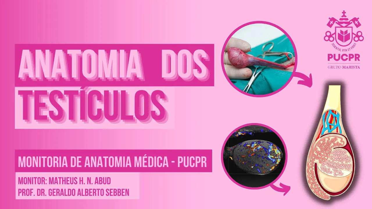 Oi pessoal meu nome é Matheus Eu sou monitor da disciplina de anatomia médica da PUC Paraná e hoje a gente vai falar um pouco mais sobre anatomia dos testículos esse vídeo tá dividido nesses seguintes tópicos a gente começa falando então um pouco mais sobre a localização dos testículos e eles estão situados na bolsa escrotal e também pode ser chamado de escroto que se situa inferiormente a síntese pública que a gente vê aqui e posso ter inferiormente ao pênis essa bolsa escrotal ela é dividida em dois compartimentos sendo que essa divisão é realizada pelo septo do