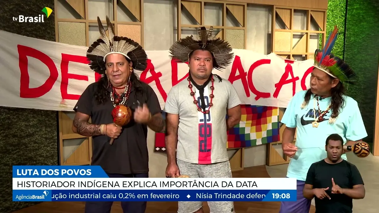 e nos estúdios da TV Brasil em São Paulo o professor e Historiador indígena casan engatou lembrou a importância da data e da Luta dos povos indígenas Cazé Também deixou uma mensagem dos povos originários do país Angatu participou de uma roda de conversa promovida pelo comitê pro Equidade de gênero e Raça da EBC em São Paulo formada por trabalhadores da empresa caser pertence a um território Tupinambá na cidade de Ilhéus é professor na Universidade Estadual de Santa Cruz e na Universidade Federal do Sul da Bahia nós somos mais interessantes as pessoas da nossa diversidade e da