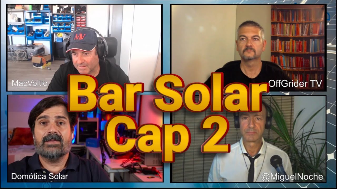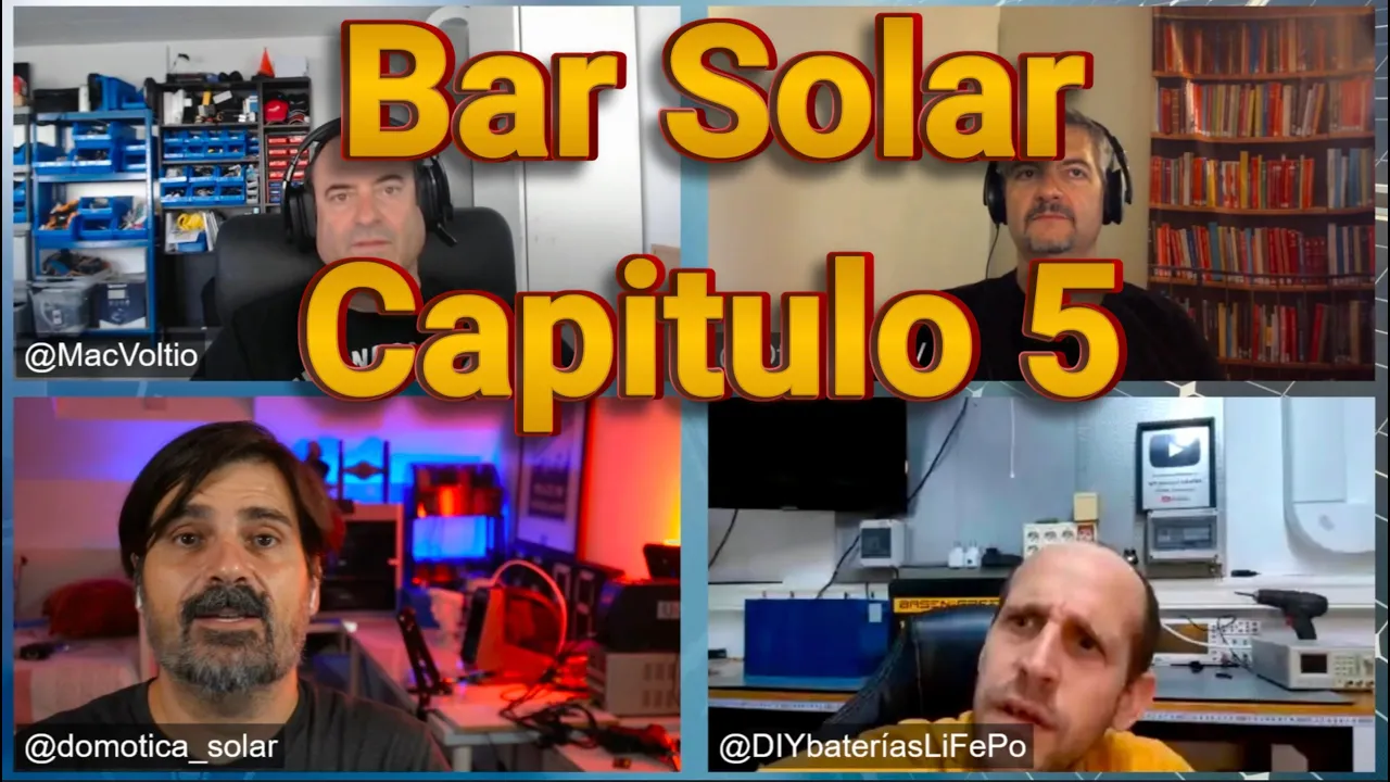 [Música] muy buenas noches y bienvenidos a otro capítulo más de el bar solar en este caso capítulo número 6 men1 por aquello de No esas cositas exactamente en el capítulo de hoy aquí veis los que estamos estamos como siempre Fernando molte Jose de tv y hoy tenemos a uno nuevo a juanmi de el canal de baterías do Yourself lifepo para el que no lo conozca y de hecho es que es hoy de la temática que vamos a tratar de un canal muy interesante para si te quieres hacer tu propia batería Do it yourself con lifepo