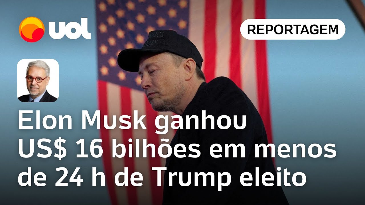 Dólares cerca de 12 120 bilhões de reais as ações da Tesla sua montadora de veículos elétricos subiram 14,7 no dia na esteira dessa Vitória Histórica de Donald trump Elon musk que é o fundador da Tesla e também da spacex ficou mais de 7,8 mais rico Só na manhã de quarta-feira com sua plataforma partindo de 264 7 bilhões para mais de 285 Bilhões de Dólares tá E então Elon musk que fez também doações volumosas para a campanha de Donald trump já conseguiu recuperar essa espécie de investimento aí tá alguns bilhões mais rico Elon musk