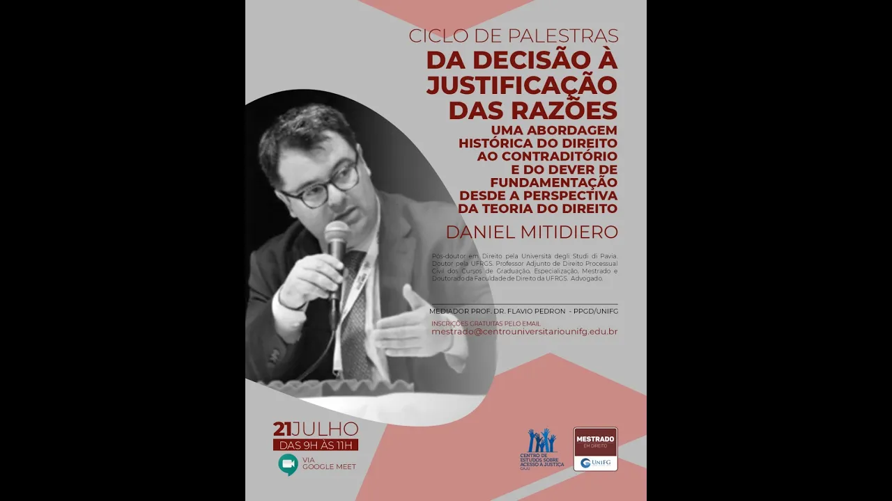 a é um dos Maiores processualistas e o nosso país tem né os seus textos são trabalhados e discutidos aqui no nosso pedido de no ppg da ponte e por isso mesmo agradecendo mais uma vez essa gentileza no daniel tecido o tempo dele pra gente poder ter essa conversa passo a palavra o professor daniel mitidiero daniel mais uma vez muito obrigado obrigado flávio eu quero alimentar ângela que é uma querida amiga minha mil anos ah que bom está junto aqui também é Ângela é enfim olha eu eu na verdade agradeço muito a gentileza da apresentação flávio