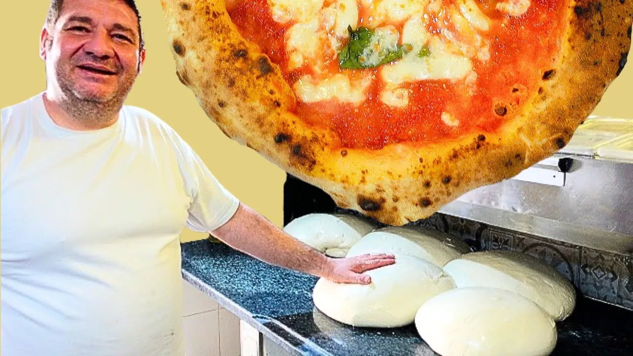 The important thing is that the machine comes out clean, I just make two folds and yet it doesn't seem like it but it's an 80% dough, we add a drizzle of oil before maturing for an hour like this, then we put them in the fridge for 6 - 8 hours after about 8 hours after 6 - 8 hours of maturation in the fridge at 4 degrees we move on to the staglio (loaves) the staglio can be done in various ways, one is this, the classic, another, for those who don't have much manual skills, this is it, here it is, as long as it is tied well under 280 - 285 grams of weight of each ball a little oil on the hands we grease the hands a little once the molding is finished, we put it in the fridge at 4 degrees and we have a total of hours of leavening around 20 hours a explosive product, a honeycombed cornice of a unique lightness after about 6 hours After about 24-26 hours these are the balls we made and they are ready to make pizzas this is our workhorse, the pizza with escarole with olives capers and pine nuts and smoked provola from Agerola and at the end of cooking we add a crumbled Neapolitan tarallo with almonds at 17 I arrived in Rome let's look at these bubbles, all water, a very light mixture Here is the legendary sausage and broccoli and provola Look at those air bubbles, all air all air our calzone with sheep's ricotta, cooked ham or alternatively Napoli salami and mozzarella Hi I'm Gigi, the baker of "Fantasia Napoletane" I'm also part of this big family. Honestly, after 35 years in the profession I can say that Don Salvatore's pizza is exceptional, try it! let's go back because Salvatore wanted to show us how he prepares his bread!