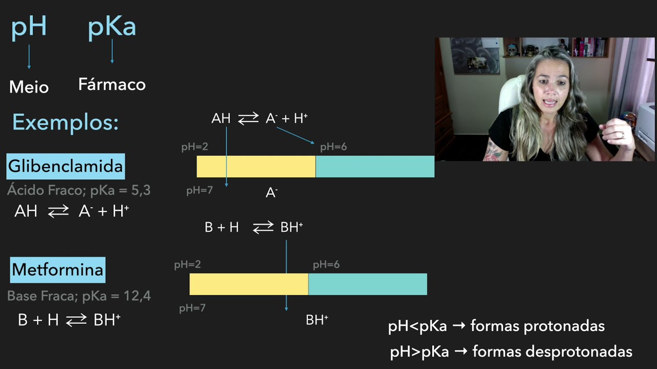 depois de muito solicitarem vamos falar de ionização da molécula do fárma que o quanto ela impacta no processo de absorção olha que maravilha na aula passada nós falamos das fases da farmacocinética especialmente a absorção também só que lá eu citei os fatores que influenciam no processo de absorção do fármaco e olha só que um dos fatores que mais impacta é a relação do pecado medicamento com o PH do Meio onde é dissolvido então na aula de hoje vamos falar mais sobre essa reação chamada ionização eu sou o professor josei toda semana estou aqui no YouTube te trazendo novas aulas Então já se inscreva no canal ative as notificações Se prepare porque semanalmente ou às vezes mais de uma vez por semana você recebe uma aula prontinha cheirando a novo sobre farmacologia fisiologia e terapêutica Então é só você se inscrever e vir para a sala de aula [Música] muito bem quando fármaco é administrado dentro do nosso organismo no local de absorção Vamos dar um exemplo por via oral ele vai ter que atravessar várias membranas até chegar no compartimento de distribuição que vamos dizer é o sistema circulatório nosso sistema sanguíneo para que ele atravesse a membrana para ele que atravesse todas essas membranas e chega até o sangue ele precisa passar através da membrana plasmática de diversas células e essa membrana plasmática como nós vimos na aula de fatores que influenciam na absorção do fármaco essa membrana ela é lipossolúvel Ela é Apolar ela não é carregada ela é composta de fósforo lipídios e membrana então quando farmaco tem a mesma característica da membrana biológica ou seja também é lipossolúvel E aí eu mostro para você essa tela ele vai atravessar a membrana por um processo chamado de transporte passivo passivo porque ele não gasta energia Ele simplesmente se difunde através da membrana entra por dentro do lipídios e segue viagem isso é chamado de difusão simples mas conforme o grau de liposolubilidade vai ser no transformado pelas reações de ionização e ele vai ficando mais hidrossolúvel ele vai perdendo a compatibilidade com a membrana E aí ele vai ter que entrar atravessar membrana de outras formas se ele for pequenininho ele consegue atravessar por poros continua sendo um transporte sem gasto de energia se ele tiver afinidade por alguns transportadores de membrana ele são proteínas de membrana ele vai ele pode ser transportado por difusão facilitada Então as proteínas facilitam a passagem do medicamento porque tem afinidade de com a molécula do fármaco se ele for água ele passa por osmose mas daí nesse caso é só um conceito de transporte através da membrana então sem gasto energia ele tem algumas opções por poro pudifusão simples e por difusão facilitada agora ele muitas vezes não consegue atravessar por difusão facilitada porque tem um conceito muito importante na difusão facilitada e nas difusões simples que não gastam energia ele só atravessa a membrana se ele estiver a favor do gradiente de concentração Então vamos imaginar que no meio da tela aqui ó é a membrana plasmática de uma célula o medicamento vai chegando em alta concentração desse lado ó sim como moléculas do medicamento e desse lado eu tenho zero show Aí ele vai começar a passar por outro lado passou uma passou duas ele continua passando ou por difusão simples ou por poros ou por dif facilitada ele vai passando até que ele fica equilibrado a concentração por exemplo três moléculas de um lado e três do outro esse essa concentração igual dos dois lados é o equilíbrio eletroquímico da molécula do medicamento aí a difusão facilitada sem gasto energia começa a ter dificuldade em passar para o outro lado não consegue passar para o outro lado mais interrompe a passagem do medicamento show por difusão simples é um pouquinho diferente porque pela facilidade em passar o medicamento já vai saindo desse compartimento indo embora e o fluxo continua então na difusão simples como aquilo que vai passando Vai Seguindo viagem a concentração dentro desse compartimento quase sempre é zero então ele passa para cá E já vai embora então é um pouco diferente mas na difusão facilitada é muito importante esse Gradiente porque a proteína passa para um lado de um lado para outro e assim vai diminuindo a concentração de um lado e quando chega no equilíbrio eletroquímico Ou seja a mesma concentração de um lado membrana que do outro para o transporte mas para transportes contra o gradiente de concentração ou seja tem muito desse lado e pouco desse lado apenas uma molécula aqui tem cinco moléculas e ela passar para aquele lado onde tem mais concentração dela eu posso pode ser utilizado o transporte ativo que é contra o gradiente de concentração e declaro isso vai depender da afinidade também da molécula do fárma com essa proteína de transporte então o transporte ativo ele pode ser primário e secundário principalmente existem outros Transportes ativos mas esses são os principais o primário como o nome já diz é um gasto direto de ATP adenosina trifosfato é uma proteína de transporte utiliza a energia do ATP para fazer a passagem do medicamento diretamente gasta essa energia já o secundário a proteína de transporte utiliza o gradiente gerado por uma outra proteína de transporte que gasta energia por exemplo a bomba só de potássio tpase que faz a o controle das concentrações de muito sódio fora e pouco sódio dentro e aí o sódio é usado como cotransporte pelas bombas ativas e assim ela consegue internalizar o medicamento para dentro da célula então o transporte ativo primário é gasto direto da energia e secundário é o gasto na verdade de uma outra proteína que gasta energia para gerar uma diferença de sódio potássio principalmente dentro e fora da célula e essa diferença eletroquímica que vai ser o que vai gerar a força necessária para atividade do tra