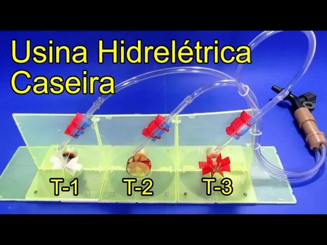 olá pessoal hoje nós apresentaremos pra vocês mais uma excelente forma de geração de energia elétrica caseira esse material poderá ser o seu próximo projeto na feira de ciências da escola e com você está observando os materiais aqui são muito fáceis de serem encontrados nesse primeiro vídeo nós mostraremos o funcionamento dessa mini usina hidrelétrica caseira pois nós queremos que você veja como ela é muito eficiente e que valerá muito a pena a sua construção ela é formada por três turbinas aqui está a primeira quando ela estiver em funcionamento essa mangueira vai levar a água passando por