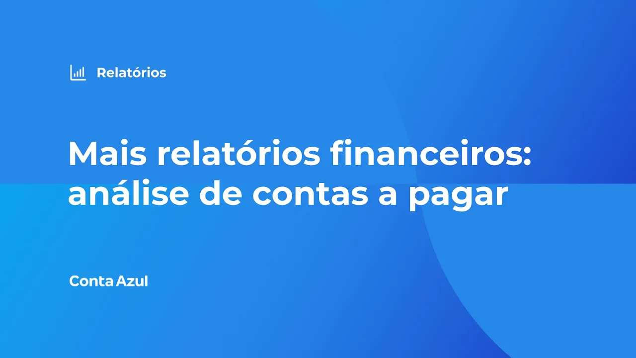 na conta Azul você tem a liberdade de avaliar seu negócio com relatórios financeiros exclusivos e tomar decisões mais informadas e estratégicas para impulsionar o sucesso da sua empresa se a sua intenção é analisar os relatórios de contas a pagar acesse o ERP conta Azul pro clique em relatórios financeiro em mais relatórios financeiros encontre a categoria de relatórios contas a pagar você encontrará sete relatórios disponíveis eles são gerados a partir dos lançamentos financeiros de despesas Ou compras adicionadas na conta azul são eles análise de pagamentos de fornecedores por mês gráfico de maiores fornecedores ordenado por despesa