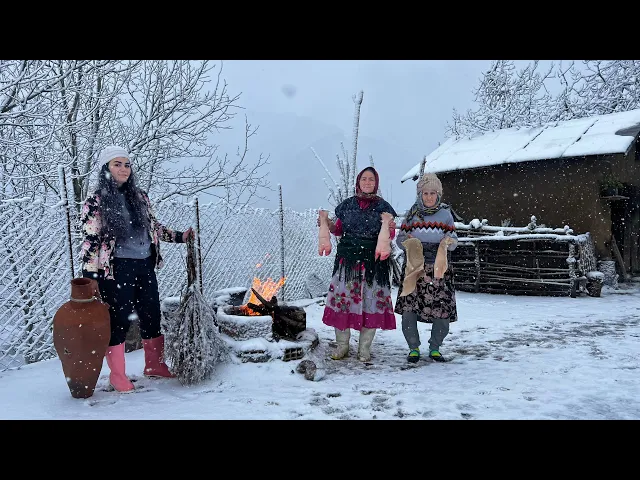 Snowy Village Day βοΈ Cooking Delicious Cow Trotters & Tripe with Grandma π₯£π₯