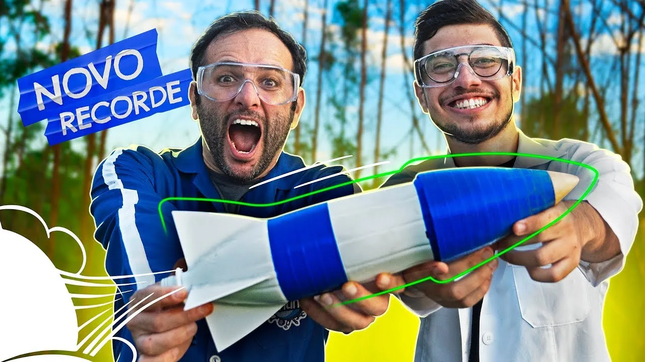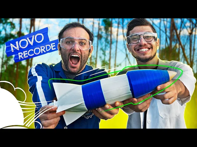 não é o mesmo né porque quando você lança acaba quebrando o Foguete absolutamente Vai um foguete e faz depende dos materiais que você construir mas como nesse daqui a gente utilizava muita pressão a garrafa acabava ficando danificado e você não conseguir utilizar duas vezes mas o modelo era muito parecido esse formato das aletas o formato do bico a garrafa né que essa modalidade a garrafa PET então todas essas variáveis e principalmente o peso do Foguete foram testes que eu fiz para chegar nesse modelo que quebrou o recorde do recorde foi acrílico acrílico que a gente