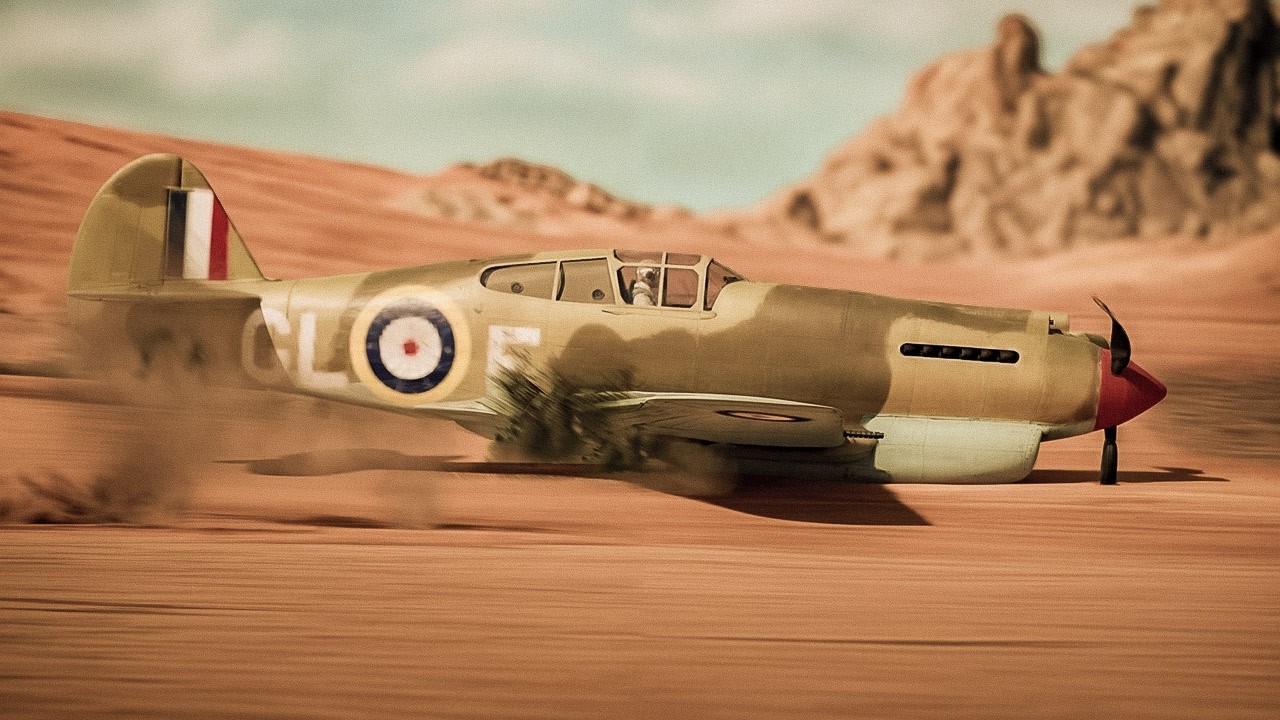 compatriot. The new opponent flies at the 109 and strikes it square on the radiator, a plume of white steam pours out of the Messerschmitt and the Spitfire victorious pulls away to return to the more pressing battle, leaving the 109 to his fate. Down below the German aircraft overheats quickly, and its engine seizes. The pilot acts with calm and spots a German held airfield not too far away. He expertly glides his wounded and steaming 109 all the way to safety and performs a gentle belly landing on the runway. Inside, the pilot takes a deep breath, he