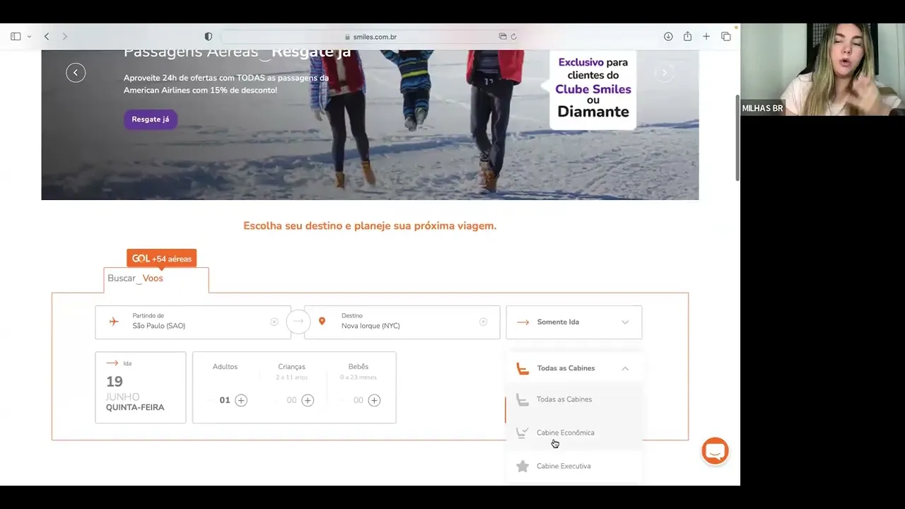 Oi eu sou a Niz e a aula de hoje é sobre a Smiles que é o programa Fidelidade da Go Linhas Aéreas e das suas companhias aéreas parceiras aqui eu já abri o site da SM você pode tanto recorrer ao site se você for usar e notebook Macbook ou ao aplicativo ali que você pode baixar no seu celular no seu tablet no seu iPad aqui utilizando já o o site que já tá aberto nós temos esses primeiros ícones milhas viagens serviços pacotes Shopping promoções então aqui ó em viagem você vai ter tanto passagens quanto hotéis e aluguéis de carro e além desses três você consegue também ter mais experiências aí com com cruzeiros parques passeios seguro viagem enfim toda essa Gama aí que o programa da Smiles oferece aí com os seus parceiros e as suas experiências em serviços aqui também com os parceiros da smes a gente tem a Uber a gente tem aqui a Pag apag gente lá você consegue comprar milhas das Miles por um valor mais baixo quando tem promoção tá não é sempre que isso acontece mas quando tem promoção você consegue comprar a partir de 1488 mais ou menos por aí pacotes e shopping aqui os parceiros também da smos em relação ao shopping magalu Casas Bahias ren Enfim então aqui a gente tem esses ícones e iniciais além desses mais específico aqui que a gente vai focar é o de passagens aéreas esse é o nosso objetivo tá eh por o que é que a gente faz aqui como uma agência se o a sua responsabilidade é atender o cliente realizar ali a cotação utilizando softwares ferramentas que vai otimizar essas buscas você vem aqui no programa da smil só se no programa das Smiles ou qualquer outro programa o qual ali você recebeu nessa busca na contação eh a melhor oferta Então dependendo da oferta que você vai ter você vai no Programa Fidelidade respectiva aquela oferta e você vai conferir então aqui eu tô mostrando para vocês e o programa da Smiles então assim se a gente tiver cortando uma passagem e a Smiles ou seus parceiros forem as melhores opções Então você vai vir aqui para dar essa checada essa conferida e radar Smiles o que como é mais ou menos que Fun funciona aqui você consegue colocar uma rota que você tem interesse e ficar monitorando essa rota viagem fácil o que seria o viagem fácil ele é um um serviço oferecido pela Smiles que você pode no caso aqui é reservar uma passagem aérea eh mesmo você não tendo as milhas suficiente para essa passagem aérea e consegue quitar essa essa dívida até 60 dias antes da viagem então assim você consegue ah encontrei aqui tô pesquisando encontrei uma uma passagem com uma emissão com valor e em milhas muito legal muito bacana e eu quero congelar e esse valor é para eu pagar depois então assim você vai utiliza o viagem fácil congela ali aquela emissão e 60 dias antes você tem esse prazo aí para conseguir quitar essa emissão aqui serviços da Go parceiras aéreas mostrar aqui para vocês ó a gente vai ter uma aula sobre as parceiras aéreas da smes aqui ó a gente tem a go a vianca americ Airlines Air France KLM aerolinhas Argentina a Canada aeroméxico a Copa emirates Europa Turkish Tap e South African então assim inúmeros Ibéria british Etiópia Coreia eh são mais de 36 parceiros a gente vai ter nossa próxima aula vai ser sobre isso então voltando aqui eh só carregar foi voltou novas rotas vai mostrar tanto em relação às rotas nacionais quanto internacionais ó que o de Janeiro Galeão para Salvador mostra aqui época sazonal quantos voos diários eh São Paulo Congonhas para Montes Claros Brasília para Juazeiro do Norte quantidade de voos na semana novas rotas internacionais aqui ó eh a própria goon são seus parceiros tá gol no caso aqui tá específico a gol mas pode ser os parceiros também Gol saindo aí de Brasília para Cancún dois volos semanais terças e sábados então aqui ó nas rotas internacionais já mostra eh quando é que vai ser vai ser a partir do dia 3/12 ainda desse ano de 2024 Brasília para Cancum provavelmente um voo direto dois voos durante a semana e toda terça e sábado então isso é legal para você já ficar atento ó Que dia é o hoje 6 de novembro então ó próxima semana já vai ter o voo São Paulo Guarulhos para São José né São José e três voos semanais terça quinta e sábado aqui ó em dezembro alta Temporada com até três voos semanais baixa temporada de um a dois voos semanais de São Paulo para Aruba Vamos ver outros aqui ó Fortaleza para Orlando é já começou isso aqui 27/06 a 6/02 2025 à quinta à quintas-feiras Fortaleza Miami já começou também Belo Horizonte para Buenos Aires já começou também Manaus Miami também São Paulo Bogotá já começou no início do ano então assim aqui você consegue visualizar as rotas novas tanto Nacional quanto Internacional e aqui a gente vai mostrar um exemplo de passagens eh aéreas para vocês não terem nenhum tipo de dúvida aqui ó clicando em passagens baixando um pouquinho isso no na versão aqui do do computador né do MacBook eh a gente vai escolher uma origem para para um destino então aqui ó partindo e destino vou colocar São Paulo e Nova York escolher especificamente aqui o aeroporto JFK Tá instável mas eu vou botar n yc que é Nova York botar logo assim Nova York Mas provavelmente vai aparecer JFK e aqui você pode escolher a data outra coisa se é somente ida se é ida e volta se são vários destinos né múltiplos destinos todas as cabines se é classe econômica ou classe executiva aqui quantidade de pessoas adultos criança de 2 a 11 anos e bebê de 0 a 23 meses então aqui ó eu vou escolher vai ser em maio não não recordo Qual foi a data pronto em maio aqui ó dia 21/05 vou confirmar vou buscar o voo aguardar aqui a o site esperar aqui certo já de início antes mesmo de carregar as informações e a emissão já mostra aqui ó aqui em cima na parte superior Esquerda São Paulo para Nova York quarta-feira dia 21/05 uma pessoa adulta e se você 