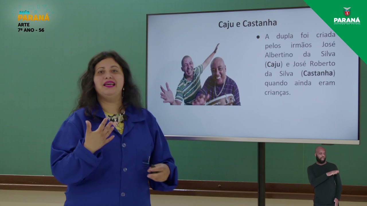 usar a criatividade para criar instrumentos musicais né chocalho de garrafa pé a bandeira de lata de marmelada a gente pode criar muito praticar e muita arte né Não não precisa usar de desculpa que não tem dinheiro para comprar um instrumento musical né e é muito legal isso bom então agora a gente vai assistir um trechinho né da apresentação da embolada da dupla Caju e Castanha Tá bom então atentos e preparados prestando atenção focados Então vamos lá é Um Desafio você escutar um [Música] E aí Oi e aí curtiram Caju e Castanha muito legal né gente