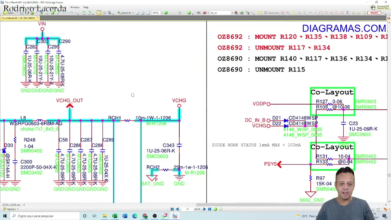 aqui vai dar certo tá ó Power vccsa acredito que pode ser a vcs a Pode ser que seja mas eu vou continuar Power tá aqui ó Bate um Power tarde tá vendo eu sempre procuro pelo chardy tá página 33 vamos lá página 33 e aqui eu tô no chade vamos ver e aqui ó acertei aqui eu estou no charge porém eu não estou vamos ver o Tiago aqui ó aqui ó tem o va tá que tá entrando aqui passando por esse diolo aqui ó Note que esse aqui não passa por um mosfet ele passa por