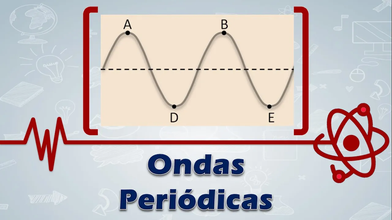 E aí [Música] e fala férias seguindo essa playlist de ondas vamos falar sobre ondas periódicas tá Olha só pessoal quando um pulso Segue o outro em uma sucessão obtemos um trem de ondas tá bom como nós estamos vendo nessa animação que é um curso depois do outro nós temos aqui um trem de onda se essa sucessão for regular ou seja se esse expulsos foram produzidos sempre no mesmo intervalo de tempo nós temos uma onda periódica tá bom ou seja uma onda periódica é aquela que se repete sempre no mesmo intervalo de tempo o nome do intervalo de tempo de repetição de Uma onda se chama período então não na primeira repetição nós temos o período um na segunda repetição período dois que é o tempo que essa repetição acontece todas as repetições acontecem no mesmo intervalo de tempo e no nosso exemplos intervalo tá aqui de um segundo nós fizemos que essa onda é periódica agora vamos em alguns elementos importantes dessa onda periódica Então tá aqui uma onda periódica como eu mostrei na animação tá certo é esses pontos aquele cima o abc são chamados de crista Tá certo só as cristas das ondas seja a parte mais alta Ok e os pontos mais baixos da onda são chamados de vale os pontos d e e f são os vales dessa onda beleza uma grandeza muito importante nas ondas é o comprimento de onda que nós representamos aqui por essa letra grega o lambida Ele parece um y e cabeça para baixo né é o lambido ele representa o comprimento de onda é esse comprimento de onda Ele é igual a distância entre duas cristas consecutivas ou a distância entre dois Vales consecutivos ele também é a distância para que um pulso ocorra na parte de cima o pulso ocorra na parte de baixo Então essa distância assim aqui é bem é igual a um comprimento de onda Então essa essa grandeza é muito importante outra grandeza muito importante da onda pessoal é amplitude Tá certo amplitude é o máximo afastamento que cada ponto do Meio ou seja crista pô Vale apresenta em relação a sua posição de Equilíbrio que essa reta tracejada daqui então amplitude é a distância da do Ponto Central né da reta central de Equilíbrio até o ponto mais alto que a crista ou à distância dessa tracejada até o ponto mais baixo que é o vale tá bom e por fim vamos falar sobre a velocidade da onda velocidade de uma onda é dada por essa expressão aqui ó ele velocidade é igual a lambida que eu comprimento da onda vezes a frequência dela vamos entender daqui a pouco é que essa frequência você pode memorizar essa forma por vem lamber ferida ver igual a lambida é que tá certo a cidade lambda de comprimento de onda e f de frequência mas que aqui frequência é essa né bom pessoal vamos imaginar aqui ó o eixo do tempo beleza e eu tenho aqui duas ondas ó duas ondas você pode perceber que as duas ondas chegam nesse nesse ponto aqui no mesmo intervalo de tempo elas Gastão mesmo tempo para ser percorrida o que que uma tem de diferente em relação a outra bom quantas cristas aparecem aqui ó tenta contar agora tenta contar quantas cristas aparece na onda de baixo hora na onda de baixo você tem uma frequência maior Ou seja aparecem aonde aparece os círculos aparecem mais vezes nesse intervalo tempo tão frequência igual a frequência da escola quem é que o aluno que tem maior frequência é aquele que aparece na aula mais vezes né Qual é a onda que têm maior frequência é aquela que se repete mais vezes né que aparece bom então a frequência ela determina o número de oscilações que você tem num determinado intervalo de tempo OK Ou seja a frequência é o inverso do período o período é o tempo para que 15 aconteça a frequência é o número de ciclos dividido pelo intervalo de tempo que acontece tá joia então você pode determinar a frequência como sendo o inverso do período com relação às unidades pessoal as mais mais comuns de frequência são Hair e RPM Hair são rotações por segundo Então se tem uma frequência de cinco reta É porque ela se repete cinco vezes acaba segundo e RPM rotação por minuto ou seja se eu tenho uma frequência de 8 RPM é porque a onda se repete oito vezes a cada minuto então a unidade de frequência está atrelada com e do período tão ré é vezes por segundo e RPM é vezes por minuto Beleza então tá aqui um conceito de frequência para você pode fazer um probleminha aqui ó Uma onda se propaga numa corda da esquerda para direita com frequência de 2 Hair eu vou marcar aqui a frequência dois Hertz como é mostrado nesta figura abaixo de acordo com a figura EA escala determine a amplitude o comprimento de onda EA velocidade dessa onda bom pessoal a amplitude é de 10 centímetros a amplitude é essa distância que eu vou grifada em vermelho aqui ó Isso aqui é amplitude tanto do centro para o ponto mais alto como do centro para o ponto mais baixo nós temos dar amplitude e isso representa um quadradinho e cada quadradinho na vertical tem 10 centímetros então é um Play e foi uma amplitude de 10 cm o comprimento de onda vai ser 40 cm porque o comprimento de onda essa distância que eu vou grifar aqui ó ela é a distância entre duas cristas ou a distância entre dois Vales Tanto faz você fazer essa distância como essa daqui quantos quadradinhos e vai contar dois três quatro final horizontal cada quadradinho tem 10 cm então comprimento de onda 4 quadradinhos de 10 cm vai ser de 40 cm Agora ele quer a velocidade da onda uma pessoa a velocidade da sonda lambda vezes F ou seja o comprimento de onda vezes a frequência o comprimento de onda foi 40 centímetros a frequência foi dois ré e isso vai dar 80 centímetros que a unidade do comprimento dividido por segundo que eu já falei para vocês que quando a frequência da de ré por a ser dado caso período né vai ser dado em segundos Então tá aqui o probleminha respondendo para você está bom vamos fazer outro problema aqui ó os modernos fornos de microondas usados e