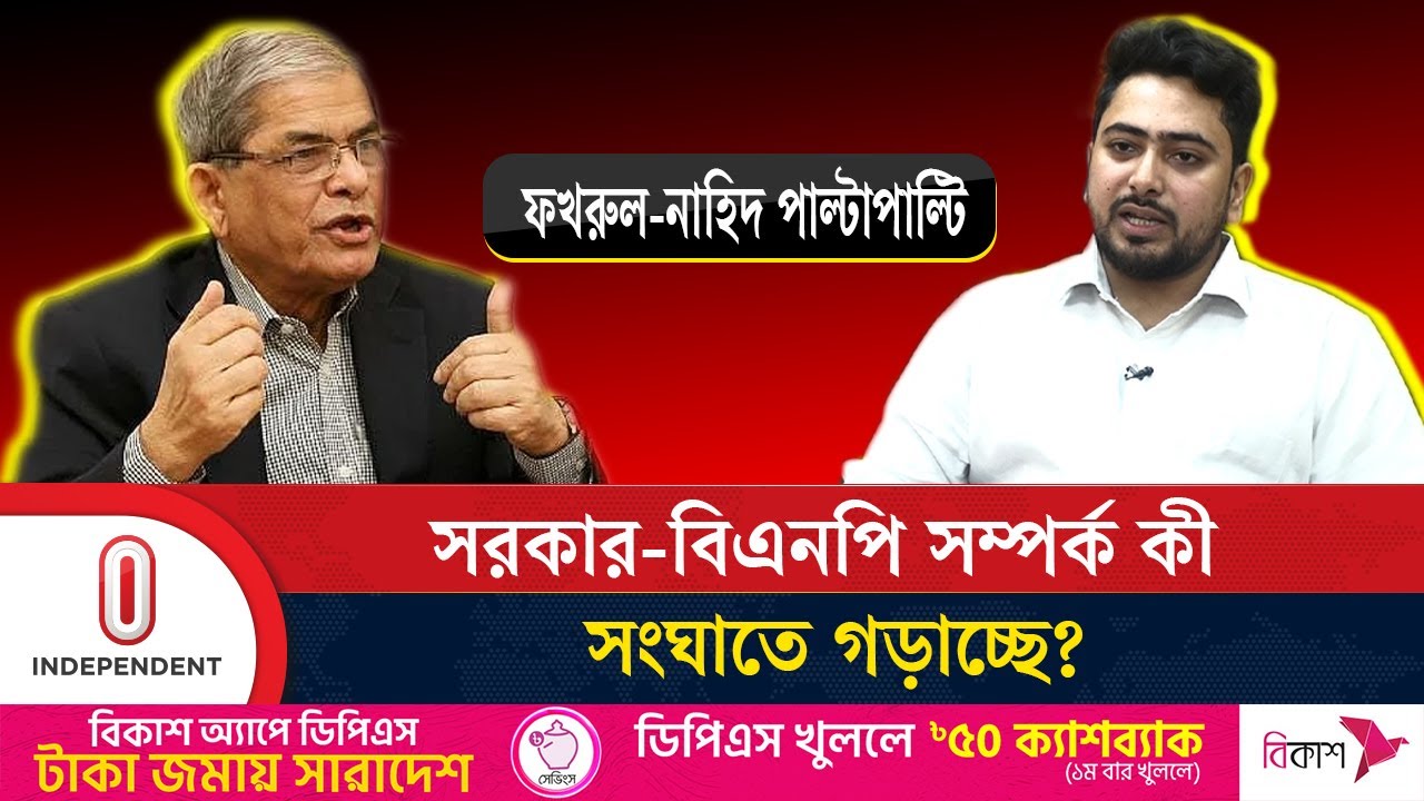 ছাত্রজনতার অভ্যুত্থানের বিরুদ্ধে না গিয়ে ছাত্রজনতার সাথে বৃহত্তর ঐক্য ও সংহতির পথ বেছে নিয়েছে এই যে নাহিদ ইসলামের বক্তব্য এবং মির্জা ফখরুলের বক্তব্য দুটা বক্তব্যকে কিন্তু আমরা সরাসরি একটা মুখোমুখি অবস্থান দেখতে পাচ্ছি আমি যদি এই বক্তব্যকে কয়টি ভাগে ভাগ করি তাহলে মূলত এই যে বিএনপি মহাসচিব যে দুটি কথা প্রধানত দুটি কথা বলেছেন বিবিসি বাংলাকে একটি হচ্ছে যে এই সরকার নিরপেক্ষ না হলে নতুন নিরপেক্ষ সরকারের প্রয়োজন হবে এই জায়গাটাকে নাহিদ ইসলাম 11 ষড়যন্ত্র হিসেবে উল্লেখ করেছেন অন্যদিকে এই যে ছাত্ররা যে এই সরকারে আছেন ছাত্রপ্রতিনিধিরা মূলত আমরা জানি যে এই সরকারে অন্তর্বর্তী সরকারের তিনজন ছাত্রপ্রতিনিধি রয়েছেন মাহফুজ আলম