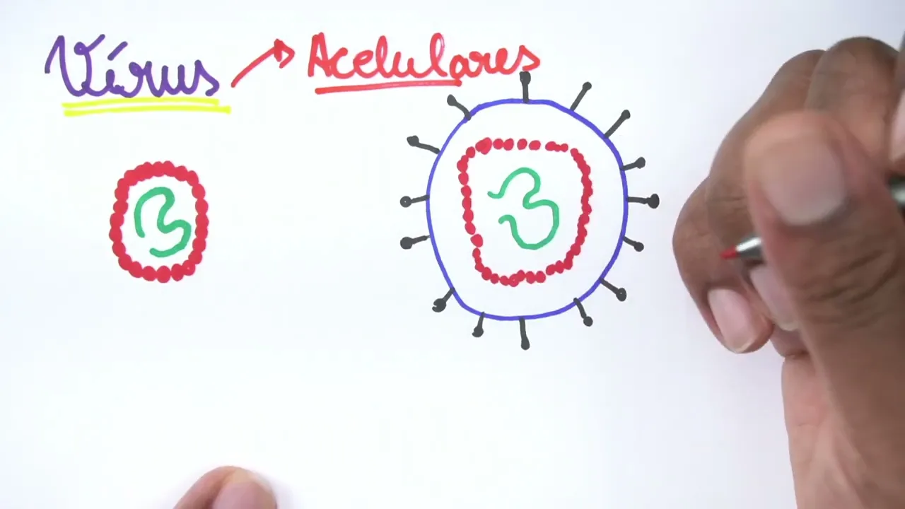 bom vamos conhecer o primeiro grupo desses organismos aqui que eu quero trazer para vocês que é o vírus então Os vírus são organismos que nós conhecemos por eles serem acelulares ou seja os vírus não possuem células né E eles são considerados parasitas obrigatórios para que eles possam ter um metabolismo ativado eles precisam estar em uma célula né então eles são parasitas intracelulares obrigatórios porque eles não possuem metabolismo próprio necessitam estar dentro de uma célula um vírus Ele é constituído por algumas partes bastante importantes por exemplo o seu material genético os vírus eles podem ter um