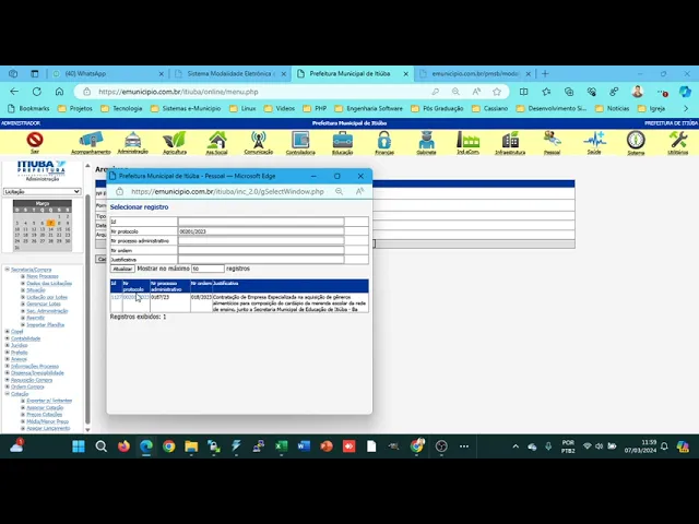 ter aind número administrativo C poder fazer as só precisa do número do protocolo porque o o vai ainda tramitar todo esse processo no sistema para gerar um número de um do processo administrativo vai gerar então o número da da licitação então isso tudo lá quem vai fazer é o sistema quando fazer o encaminhamento aí OK então você escolhe aqui o processo nós selecionamos e o fornecedor Então você vai localizar aqui um fornecedor você vai pesquisar pelo CNPJ procura sempre colocar o pontinho né Por exemplo aqui a 10.03 por exemplo você pesquisa aqui ó por exemplo
