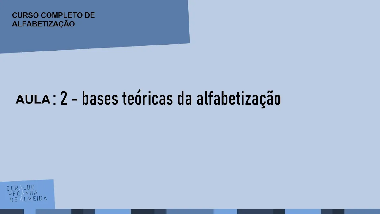 o Olá eu sou o professor Doutor Geraldo Peçanha de Almeida vamos para a nossa segunda aula do curso completo de alfabetização na aula anterior Nós estudamos sobre a estimulação o desenvolvimento a a parte lúdica que contextualiza e que motiva o aluno ao processo de alfabetização nessa nossa segunda aula o objetivo dela é que possamos compreender duas importantes bases teóricas para o processo de alfabetização e nós vamos para as duas mais comuns ou as duas mais consideradas na realidade brasileira que é Piaget e Vygotsky ou seja construtivismo e o sociointeracionismo é muito importante que todos nós